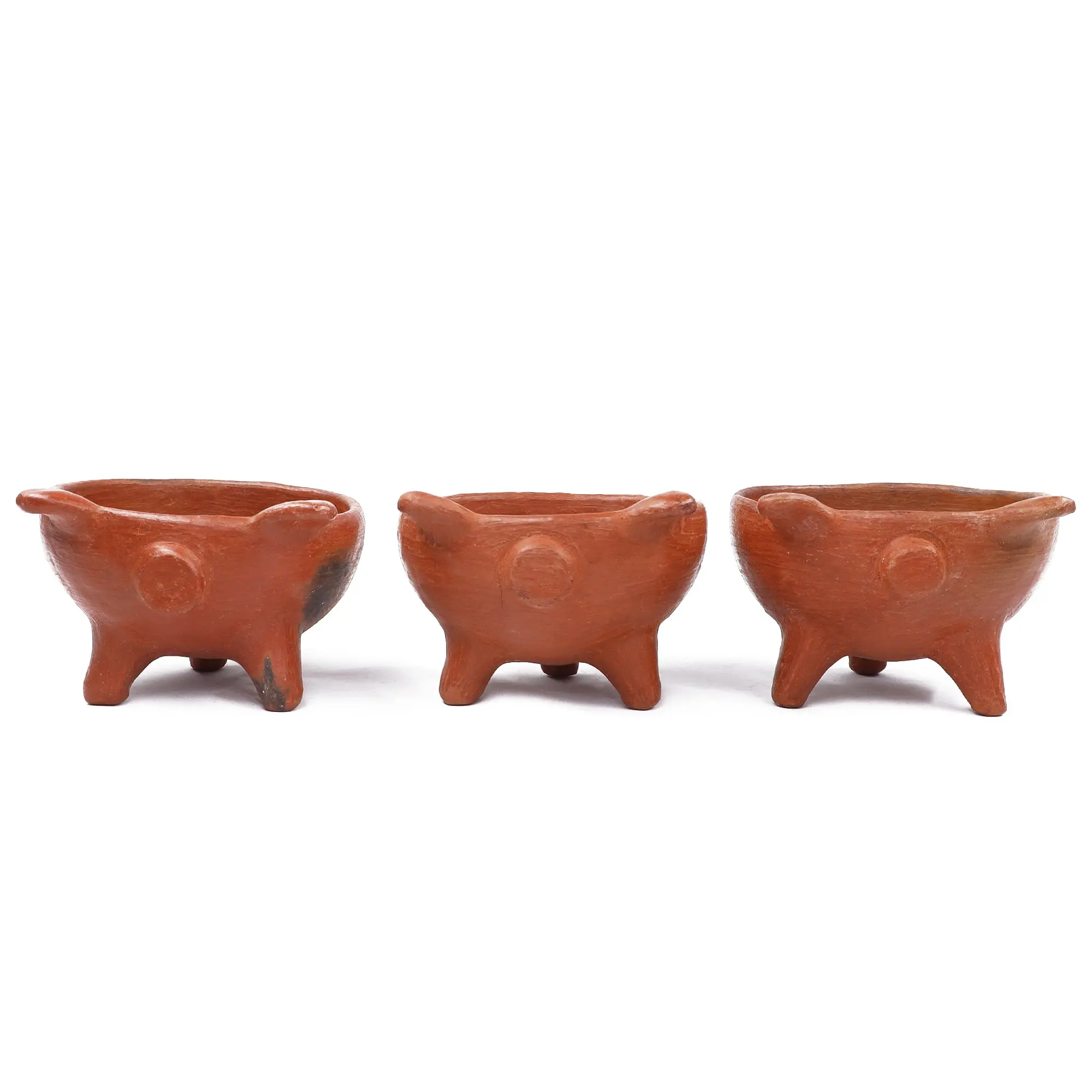 Delight in the whimsical charm of these Barro Rojo Terracotta Piglet Salsa Bowl, a unique piece of Mexican handmade artisanal pottery. Handcrafted with love in San Marcos Tlapazola, a Zapotec town in the landscapes of Oaxaca famous for its Barro Rojo (red clay) pottery.