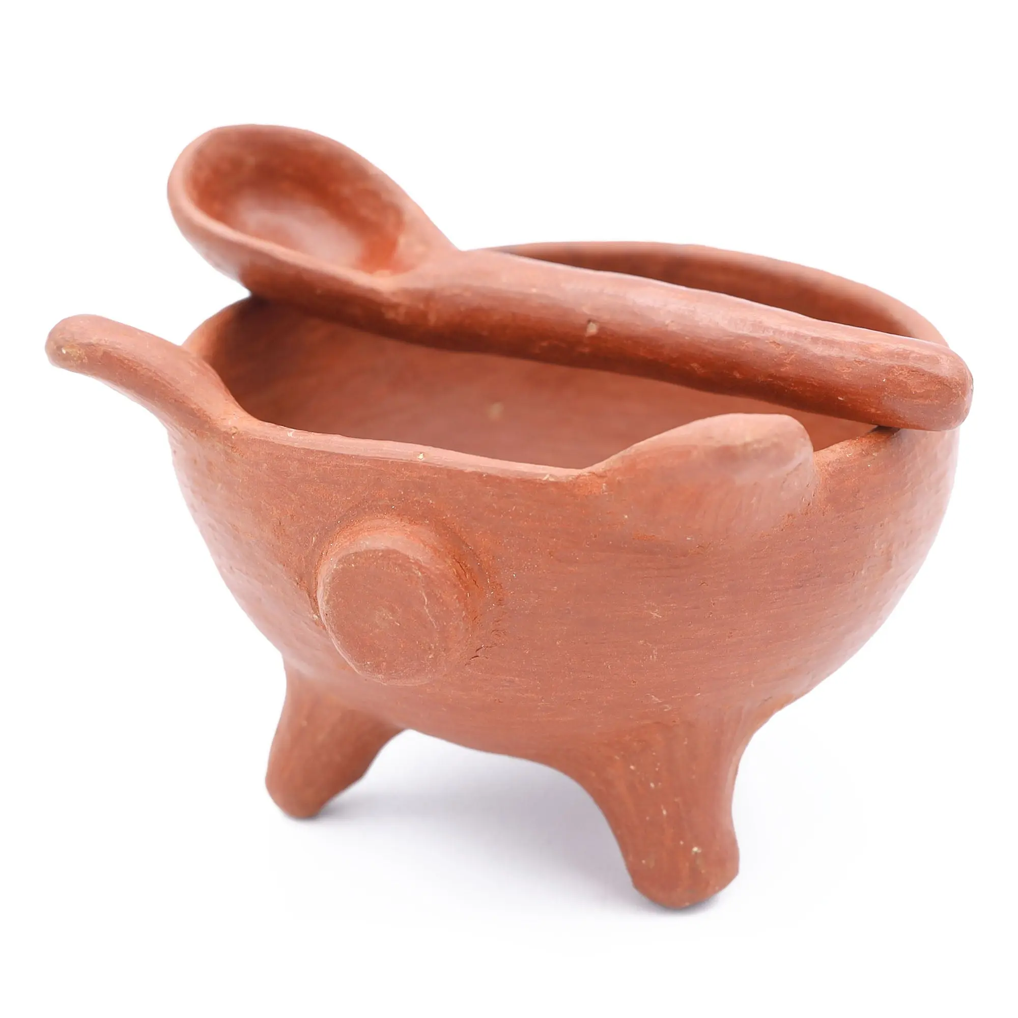Barro Rojo, or Red Clay Terracotta Cochinito (Piglet) Salsa Bowl with Matching Spoon Made in San Marcos Tlapazola, Oaxaca.