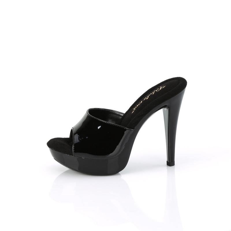 Step into the spotlight with the Cocktail-501 Slides from Fabulicious. These stunning slides are designed with a bold five-inch heel and a one-inch platform, creating a sleek and sexy silhouette that is perfect for dressing up or down. Whether you're going out dancing or attending a formal event, these slides provide superior comfort and quality, making them an excellent choice to complete your look. So why wait? Embrace your inner diva and get ready to turn heads with these fabulous slides.