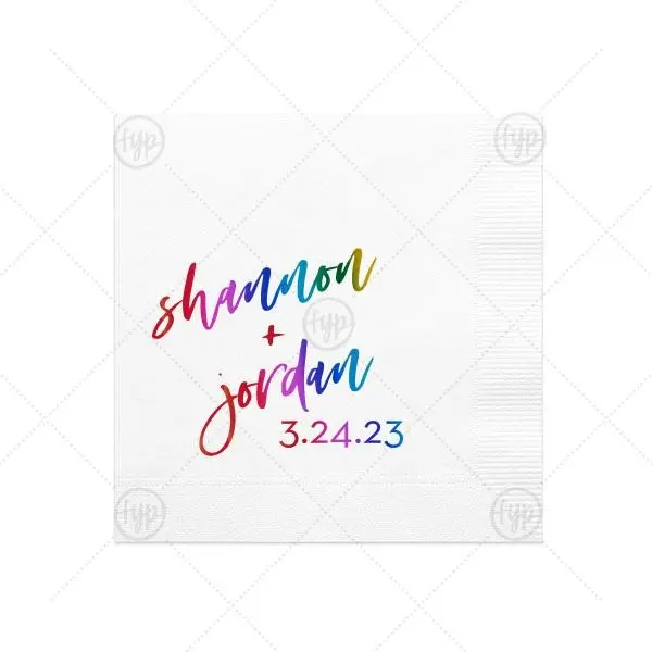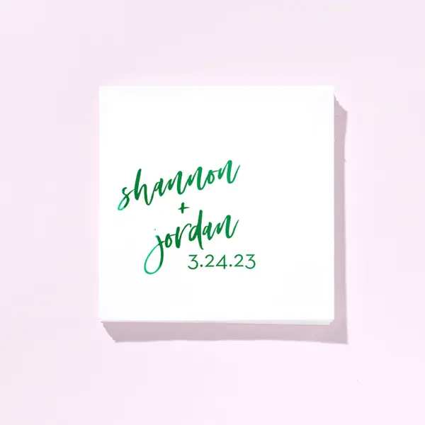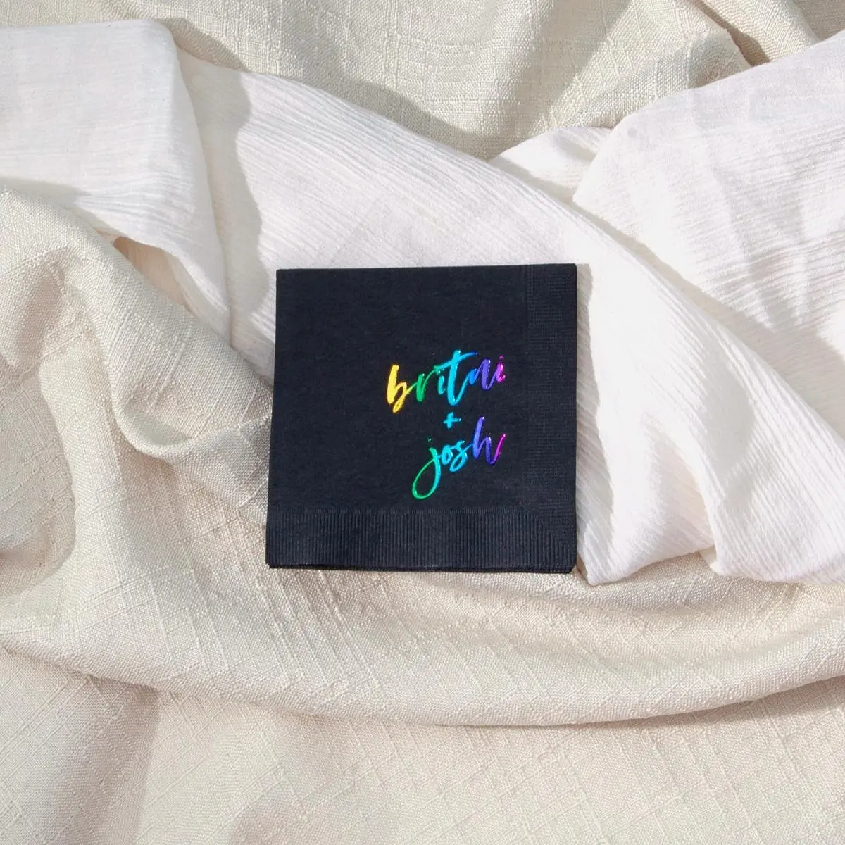 Our beautiful custom Slate Cocktail Napkin with Shiny 18 Kt Gold Foil can't be beat. Showcase your style in every detail of your party's theme! Set of 50. Script Names And Date - Shiny 18 Kt Gold Foil - Cocktail Napkins - Personalized - Set of 50 - 5"" x 5"" by For Your Party