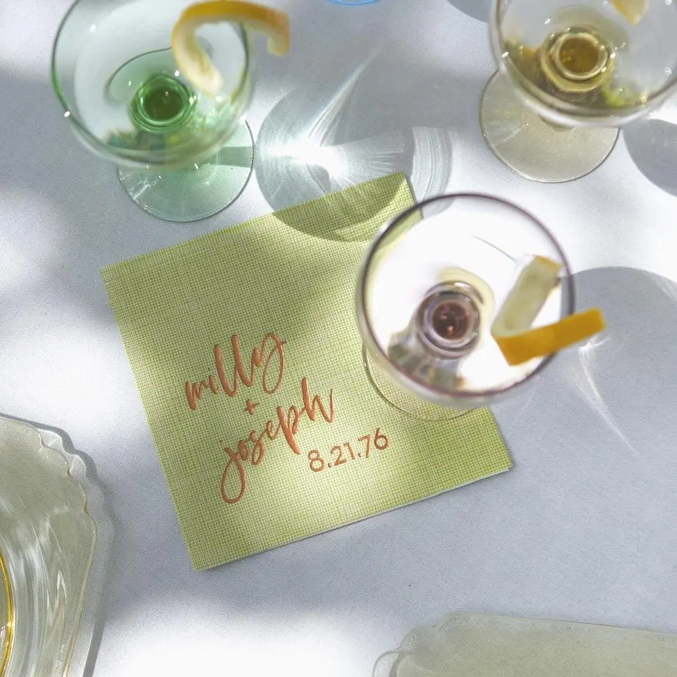 Classic Cocktail Napkins are the perfect companion for any event. Add a touch of refinement to your cocktail parties, weddings, or birthday celebrations. Whether you're sipping a Martini, Old Fashioned, or a signature cocktail, these beverage napkins are the perfect accompaniment to elevate your drink service to new heights.