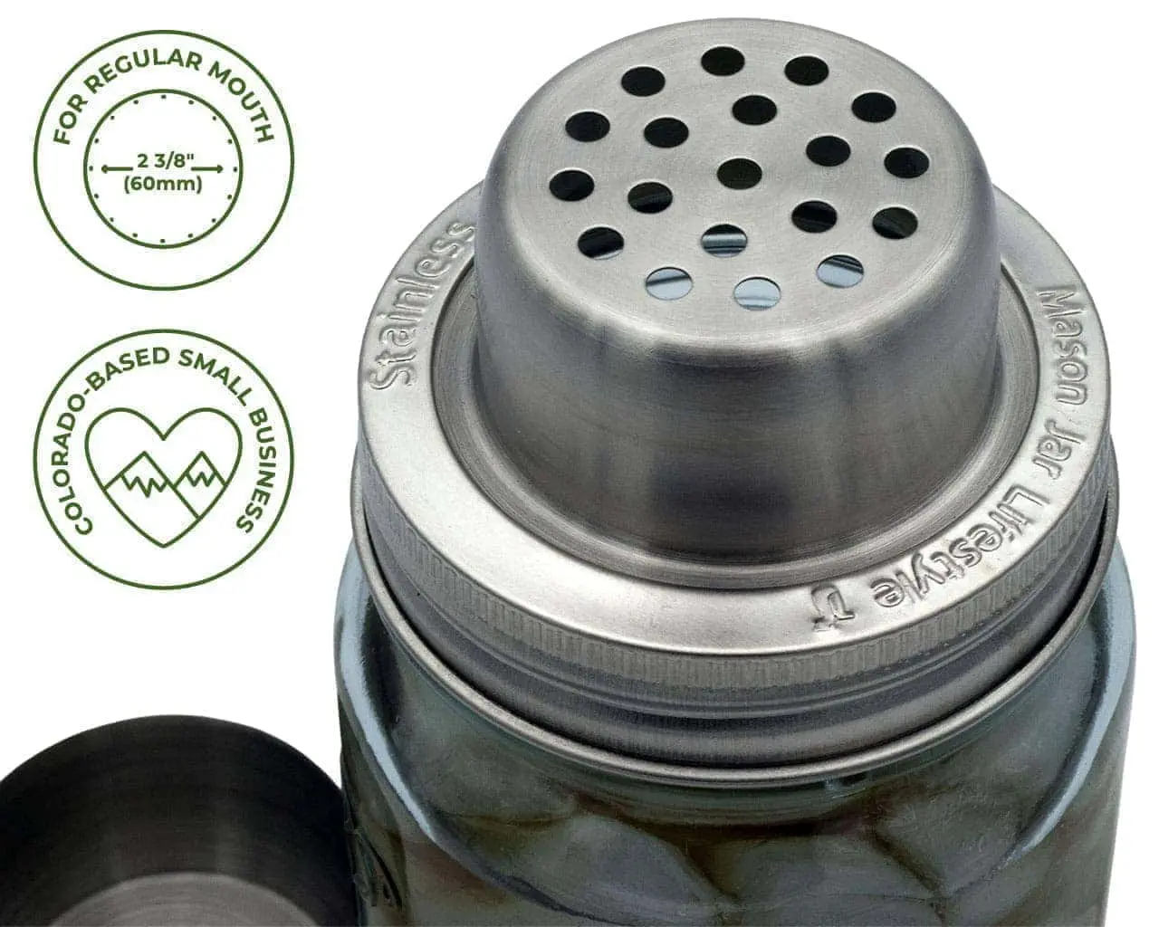 Stylish & Functional: Shake up your favorite cocktails in style with this sleek Mason jar shaker lid. This unique Mason jar shaker lid is sure to attract attention and comments!