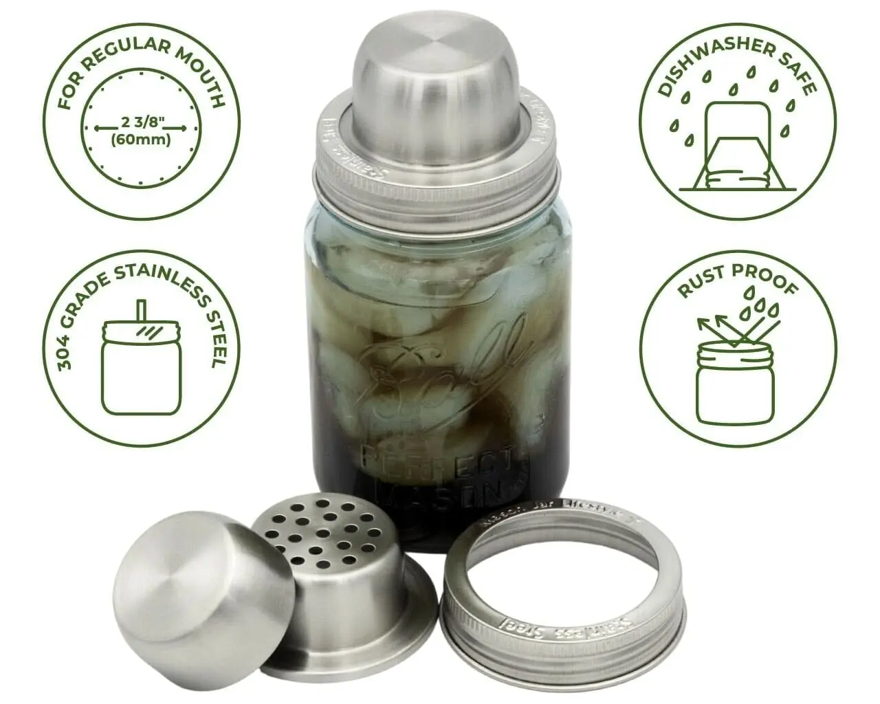 Space-Saving Solution: No need for bulky cocktail shakers. This lid works with jars you already have, making it perfect for small kitchens or bar carts.