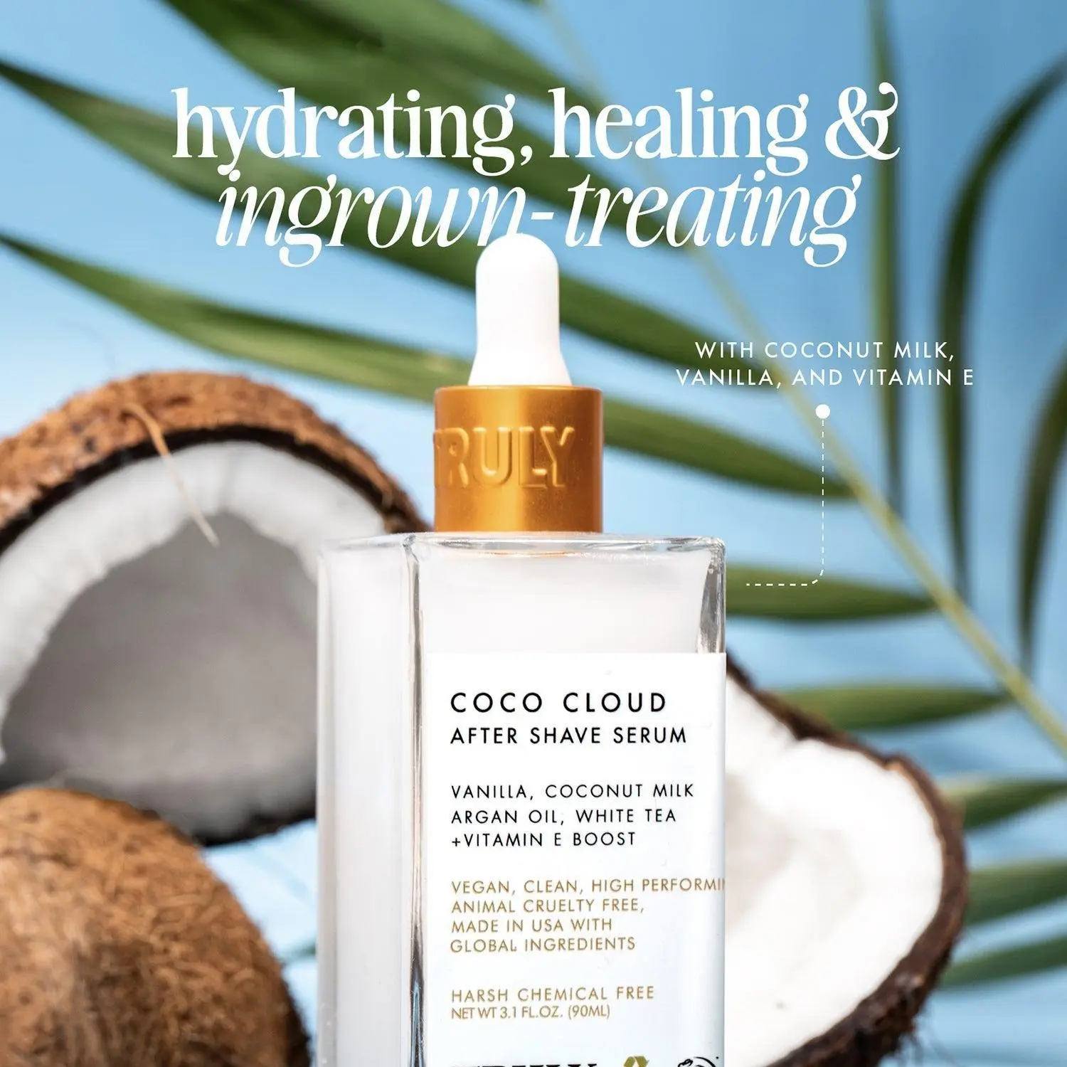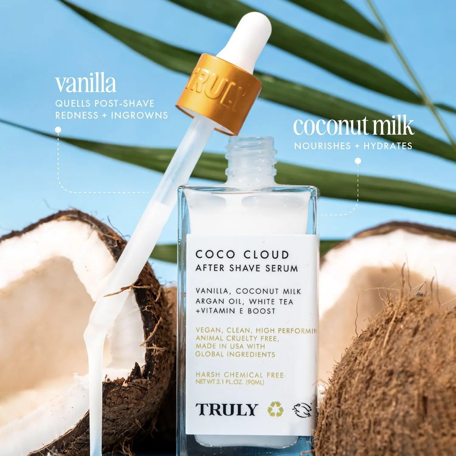 A cooling, milky serum that visibly brightens and calms irritated skin. Blended with coconut milk and argan oil, it takes the sting out of razor burn and bumps so your sensitive skin can feel soft and soothed.