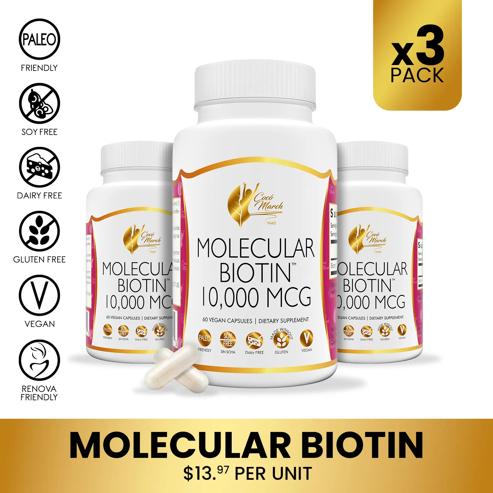 Molecular Biotin by Cocó March - 60 capsules per bottle