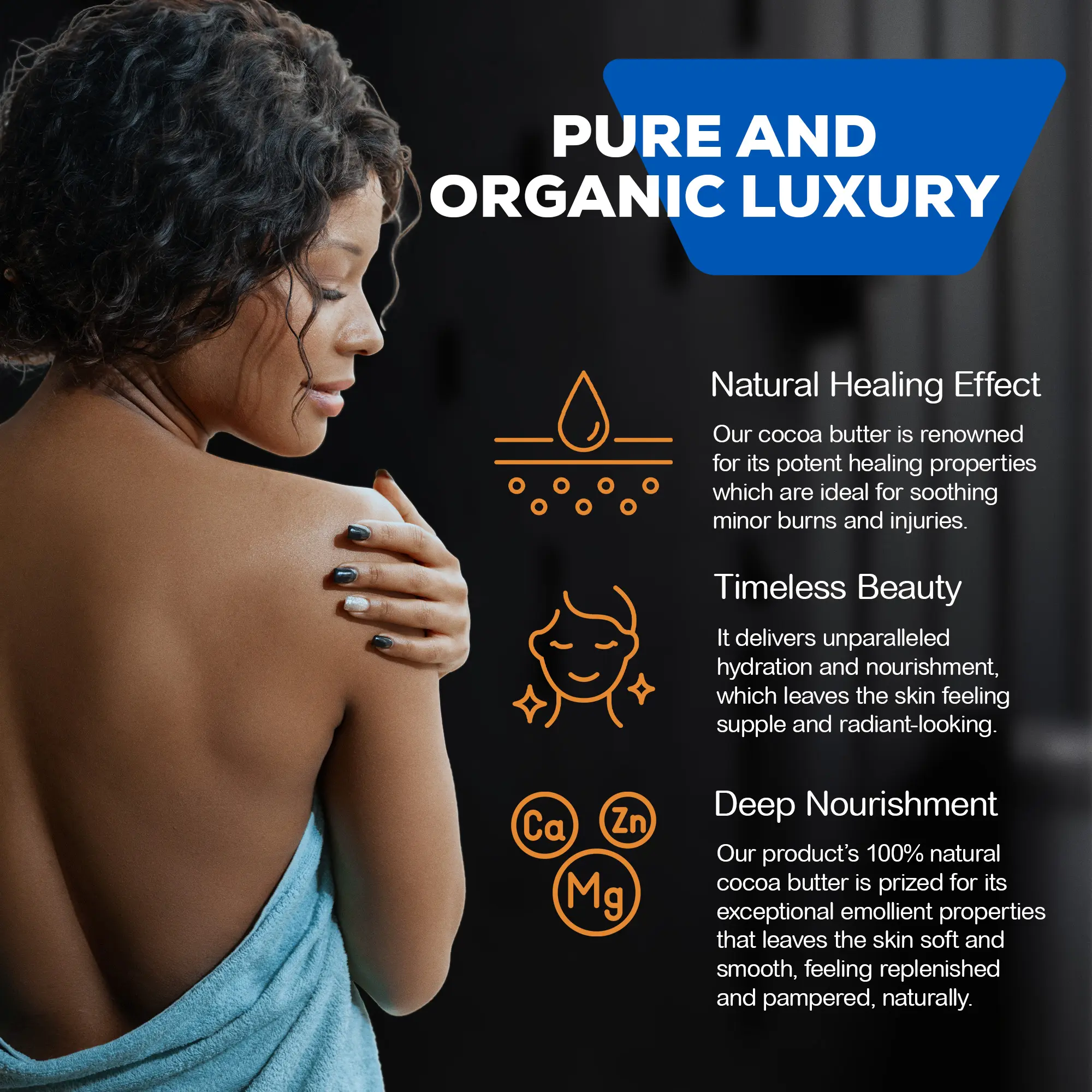 ·100% Pure and Unrefined: Sourced directly from rich, premium cocoa pods in West Africa, Ghana.