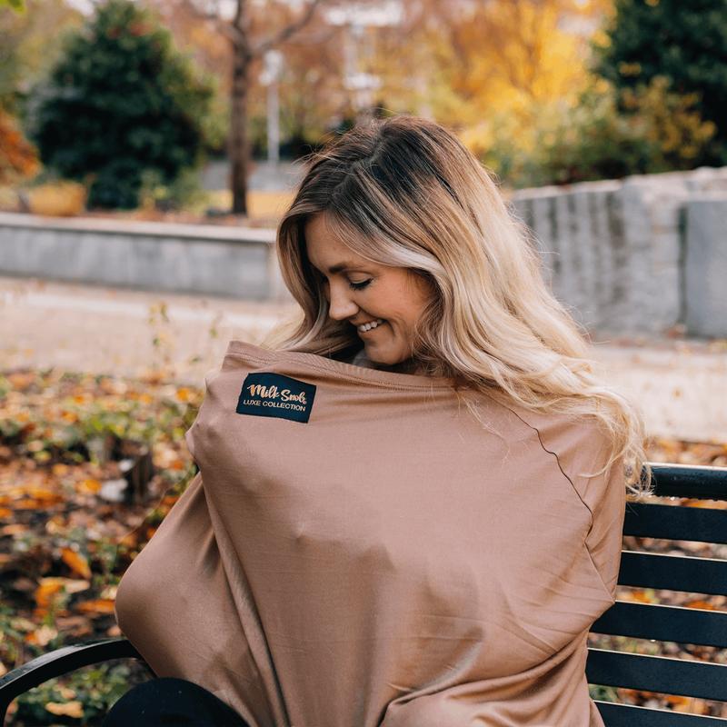 The same 5-in-1 Milk Snob multifunctional cover you already love in an even more luxuriously soft fabric. Use the Cocoa Luxe Cover car seat cover, nursing cover, shopping cart cover, high chair cover, infant swing cover, and more. This cover features the perfect neutralbrown color.
