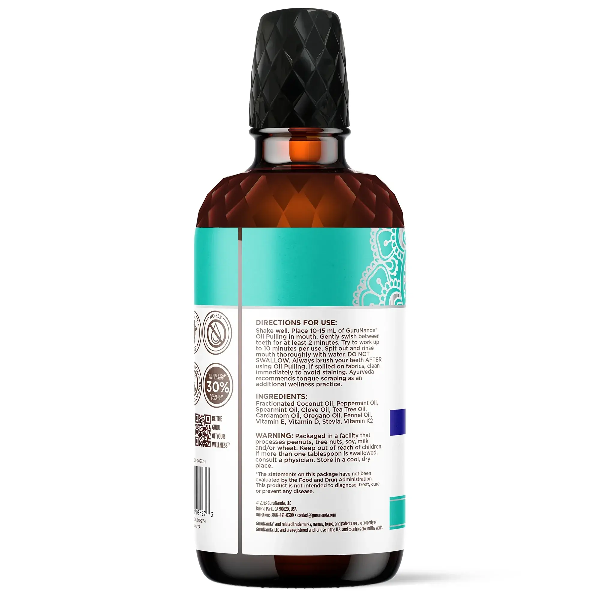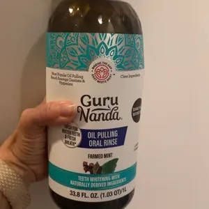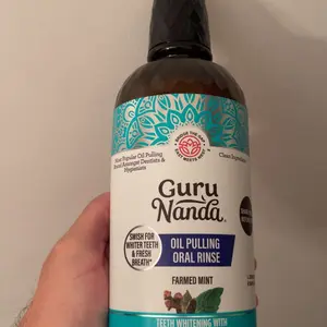 GuruNanda Pulling Oil is a natural, pre-brush rinse inspired by Ayurvedic wisdom. It comes in a 32 fl oz bottle, which acts as a refill for your 8 oz bottle.