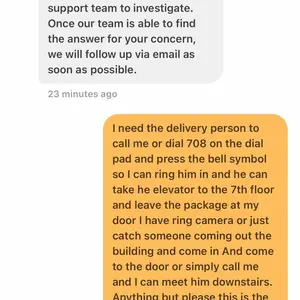 Second package that I didn’t receive. I sent messages to go bolt and asked them to please have driver call me. Nobody has ever responded. This is ridiculous. No delivery support. I have ring camera and once again no-one came to the door. They are only taking a pic of the top of box not my door.