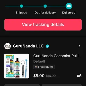 I ordered six GuruNanda Oil pulling products on TikTok for $5.00 each, with free shipping. However, I received a facial product for wrinkles instead. My TikTok orders confirmed the oil pulling items were delivered. I’m disappointed with the mix-up and hope to resolve this issue with the seller soon.