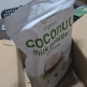 Came super fast, very well packed, smells like coconut, but it takes about 10 scoops from the bag to a slight touch of milk, can hardly feel the coconut flavor at all