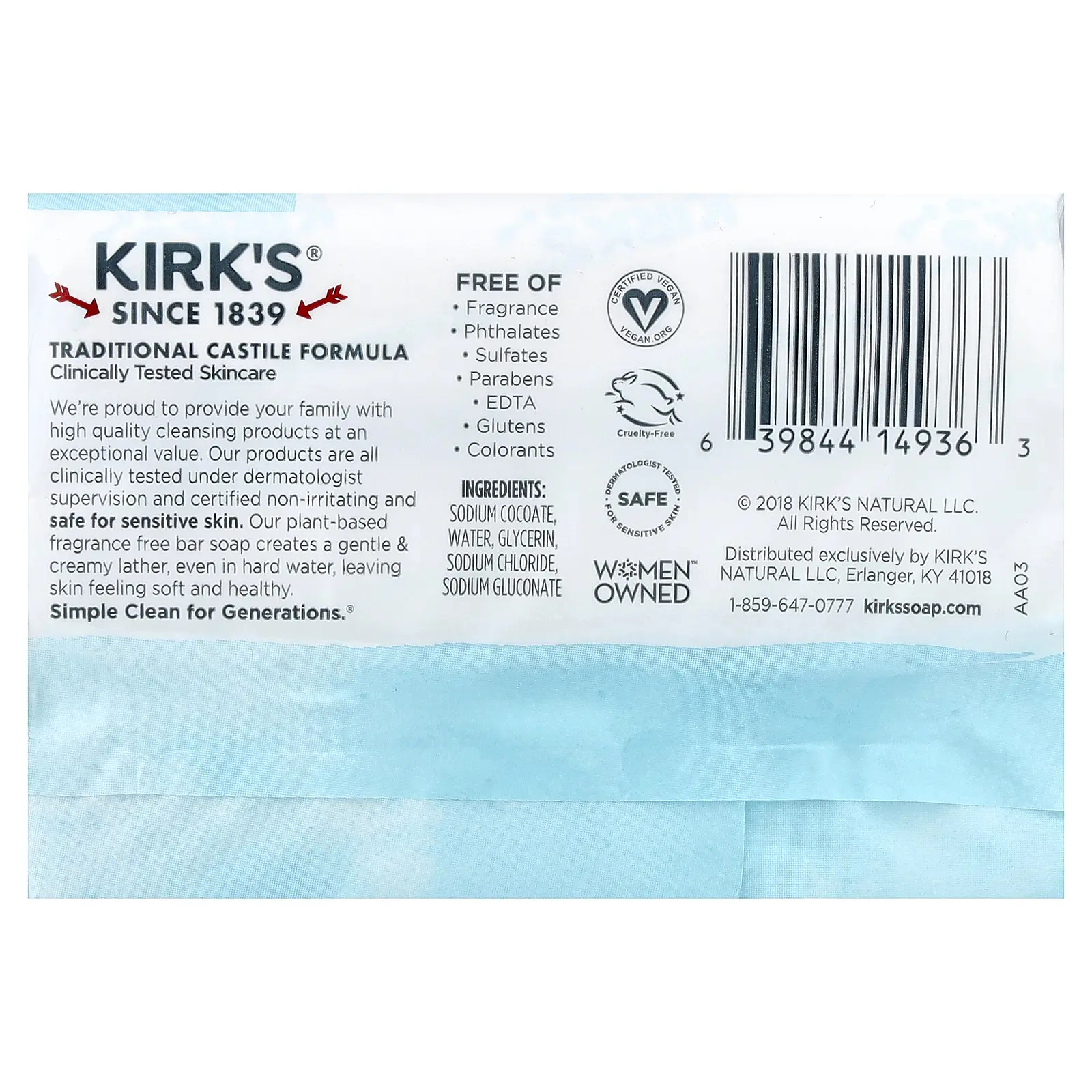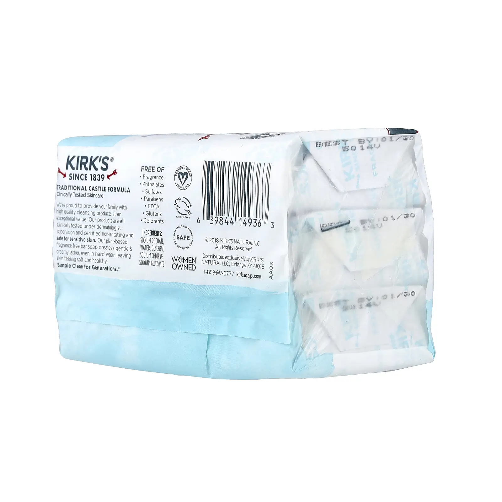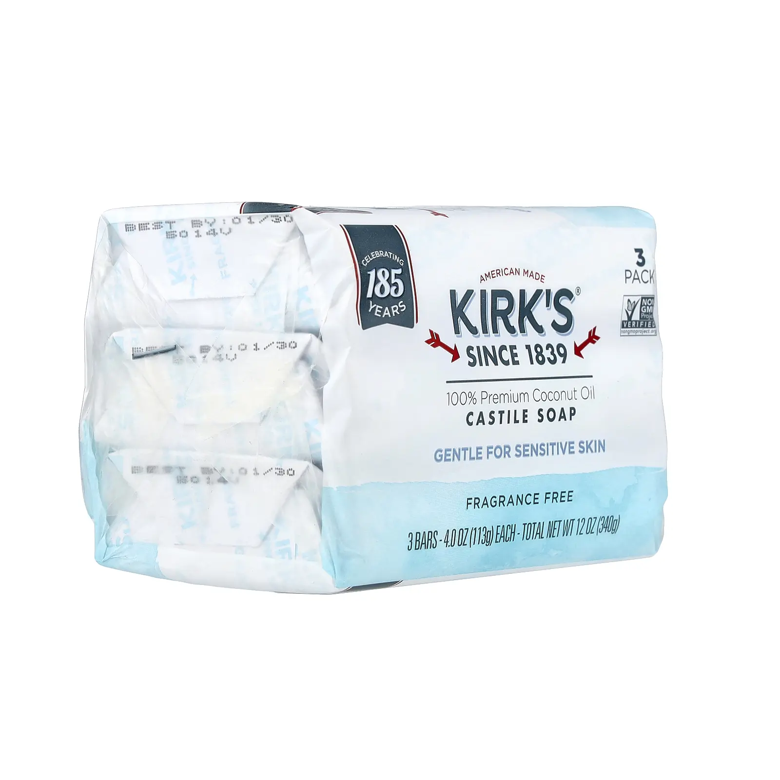 5. Kirk's 100% Premium Coconut Oil Castile Bar Soap, Fragrance Free, 3 Bars, 4 oz (113 g) Each