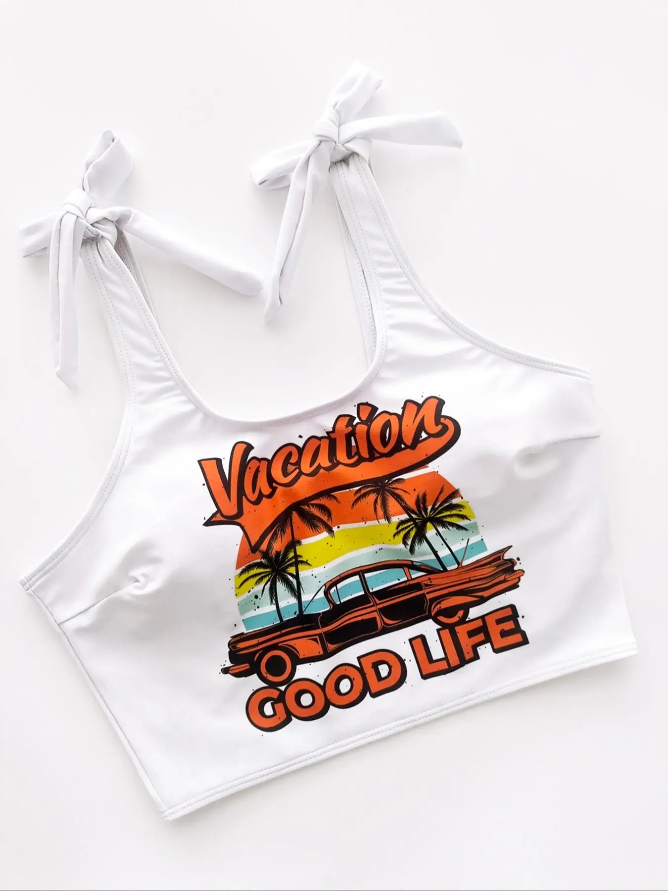 Cute fits amazing I got a large I’m 5’1 and weigh 173 for reference I took the little white ties off I didn’t like them but this is a yesss for my trip well worth the price get you one