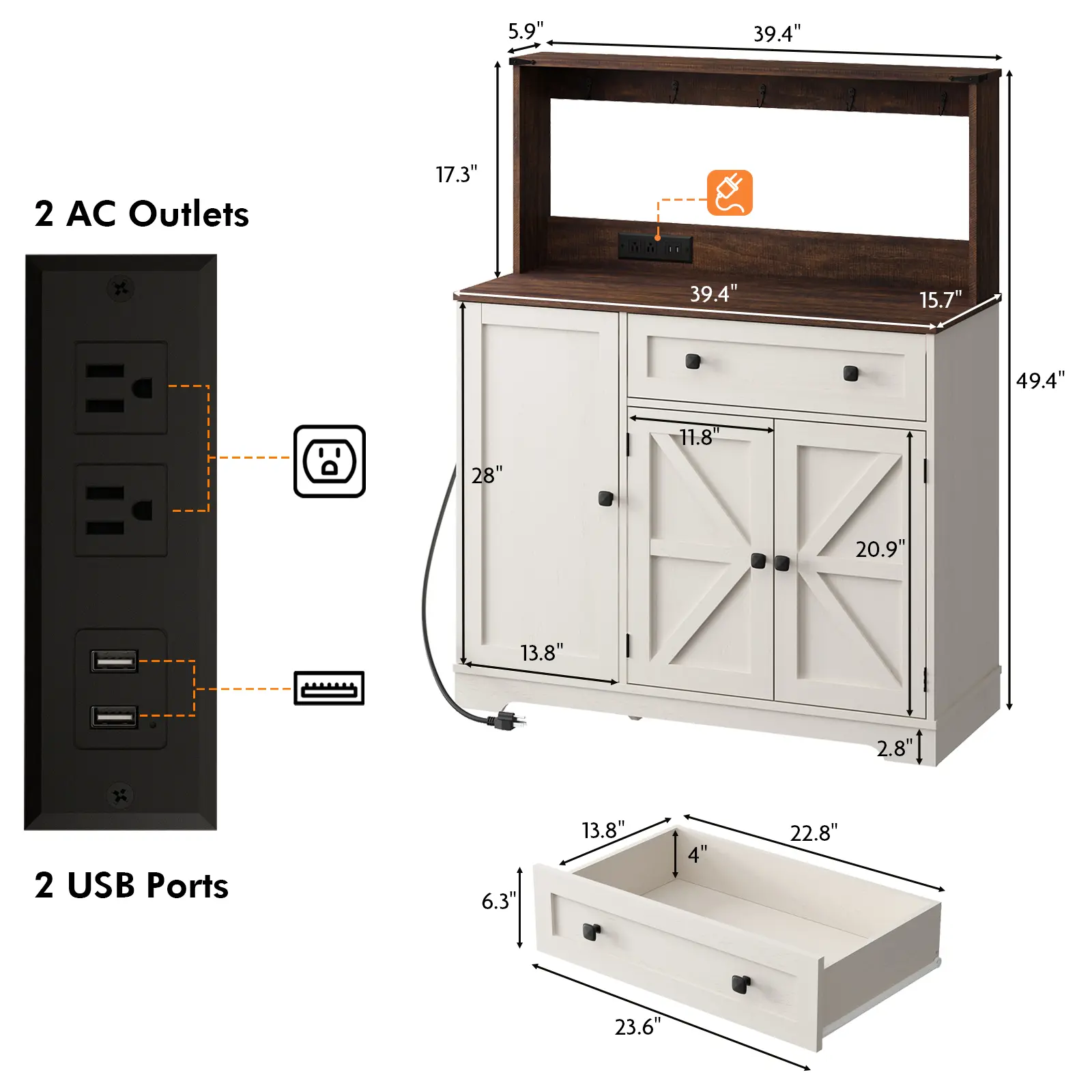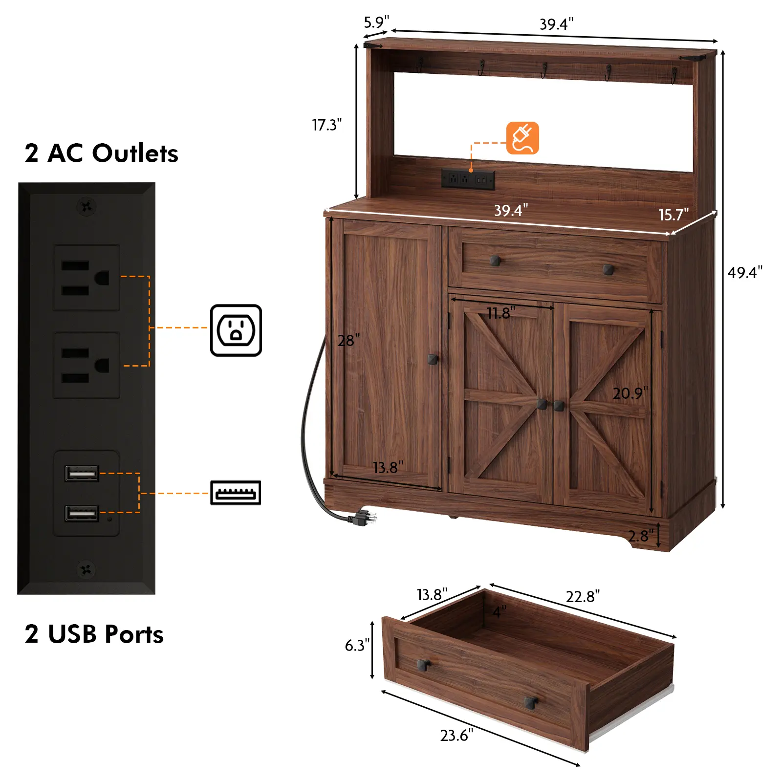Beautiful and great quality cabinet. The rustic design looks elegant and fits perfectly with my home decor. It’s sturdy, easy to assemble, and the built-in outlets and USB ports are very convenient for a coffee station. Exactly as described. Highly recommend!!