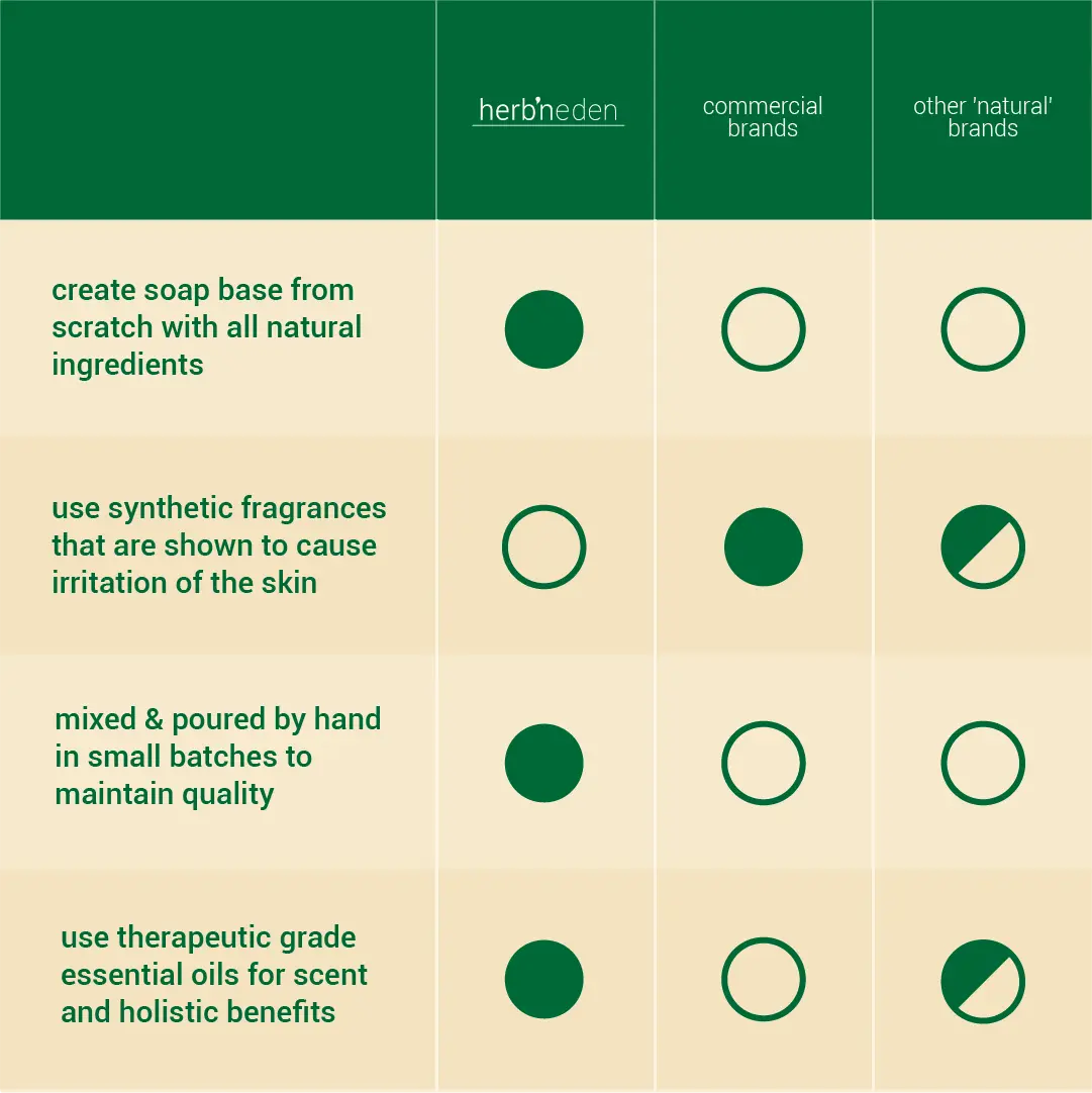 We use therapeutic grade essential oils for scent and solar infused oils for healing benefits.
