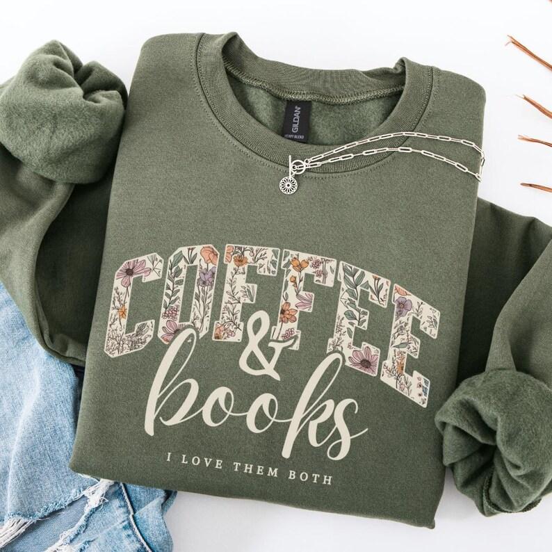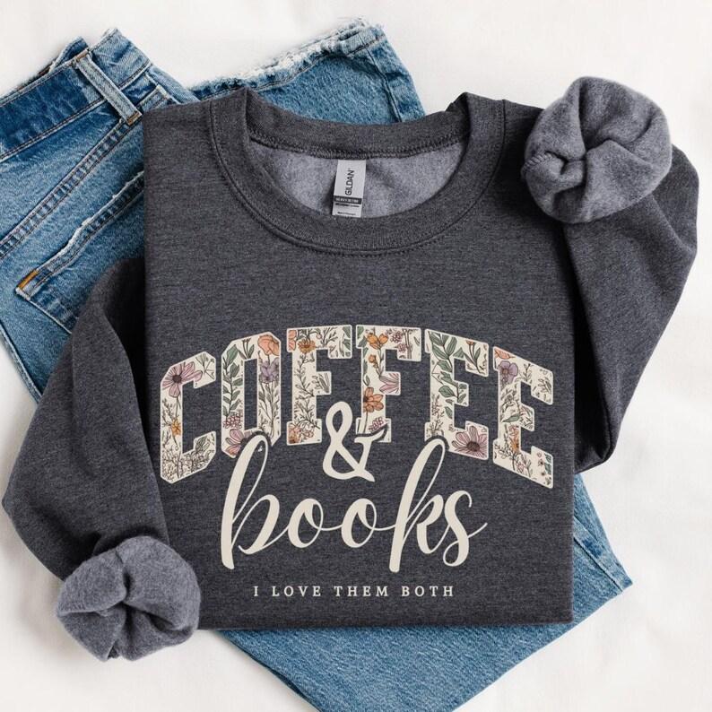 Coffee & Books Sweatshirt, Cute Book Lover Sweatshirt, Book Club Shirt, Cozy Reader Gift, Teacher Back to School Graphic Crewneck