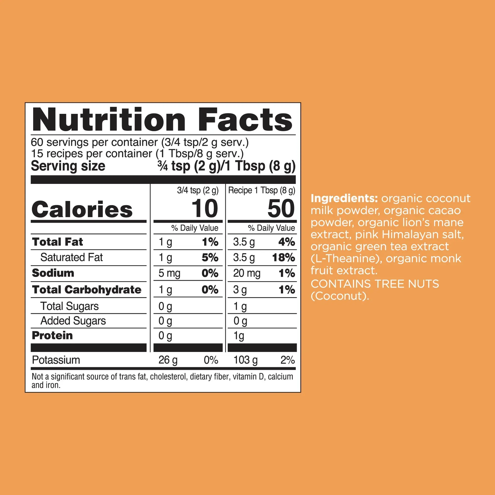 Delicious organic, instant coconut milk creamer infused with lion's mane mushroom & L-theanine for mental clarity and energy.