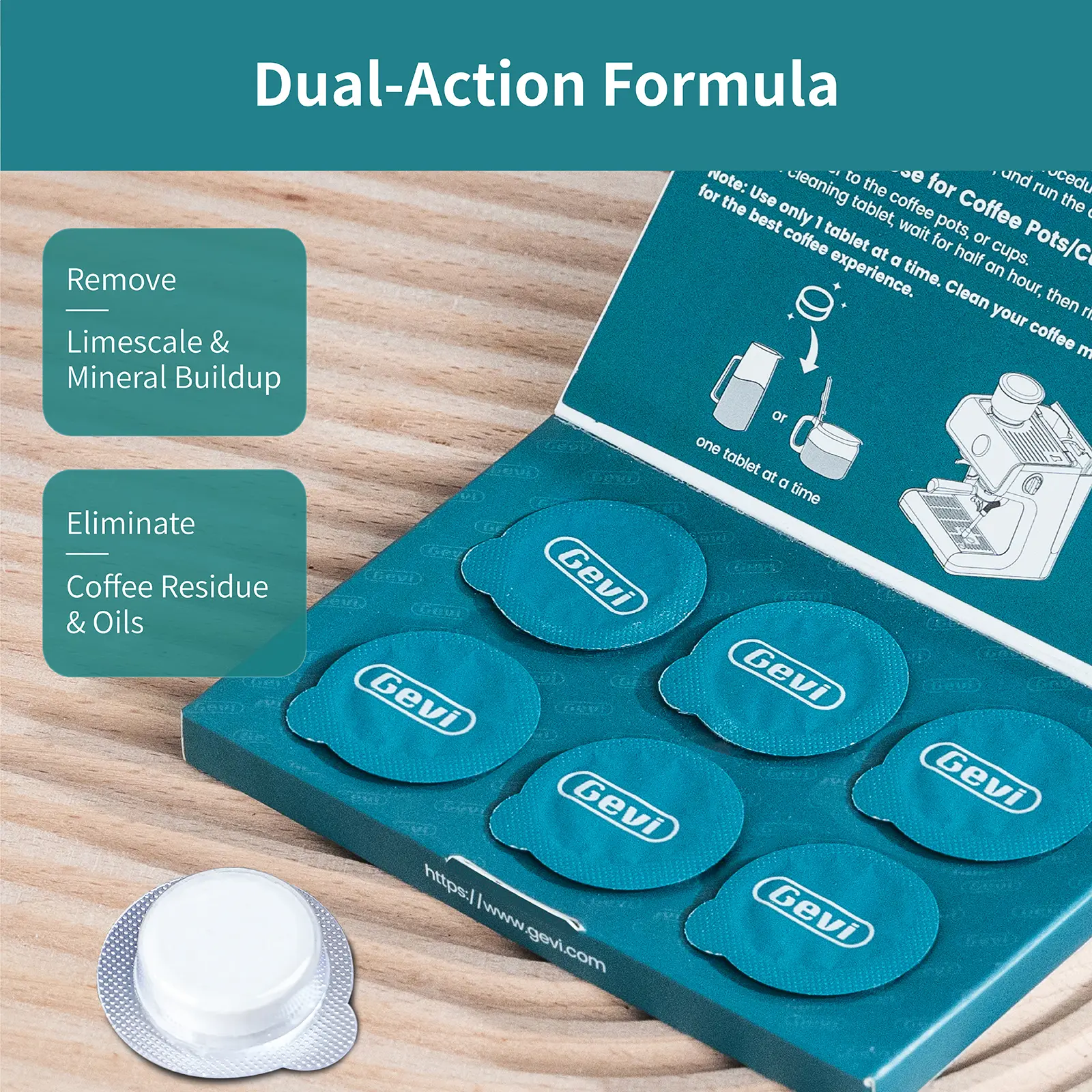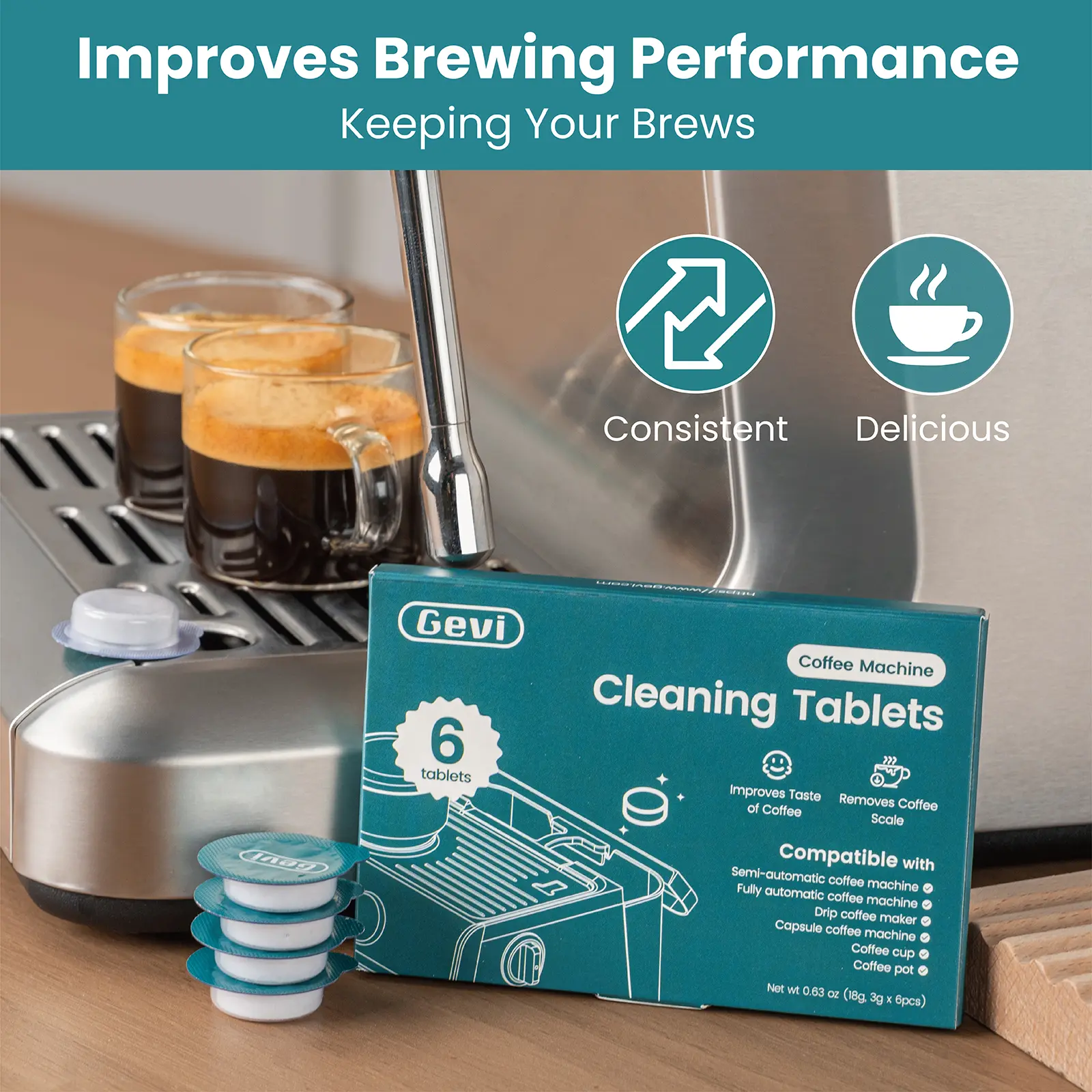 𝐃𝐞𝐞𝐩 𝐂𝐥𝐞𝐚𝐧𝐢𝐧𝐠 & 𝐅𝐫𝐞𝐬𝐡𝐧𝐞𝐬𝐬 - Gevi advanced formula penetrates and removes tough coffee residue, oils, and buildup, ensuring your coffee tastes as fresh as possible.
