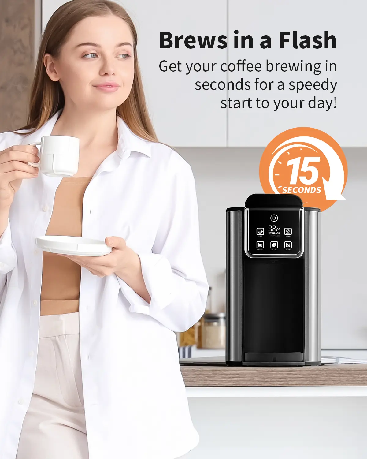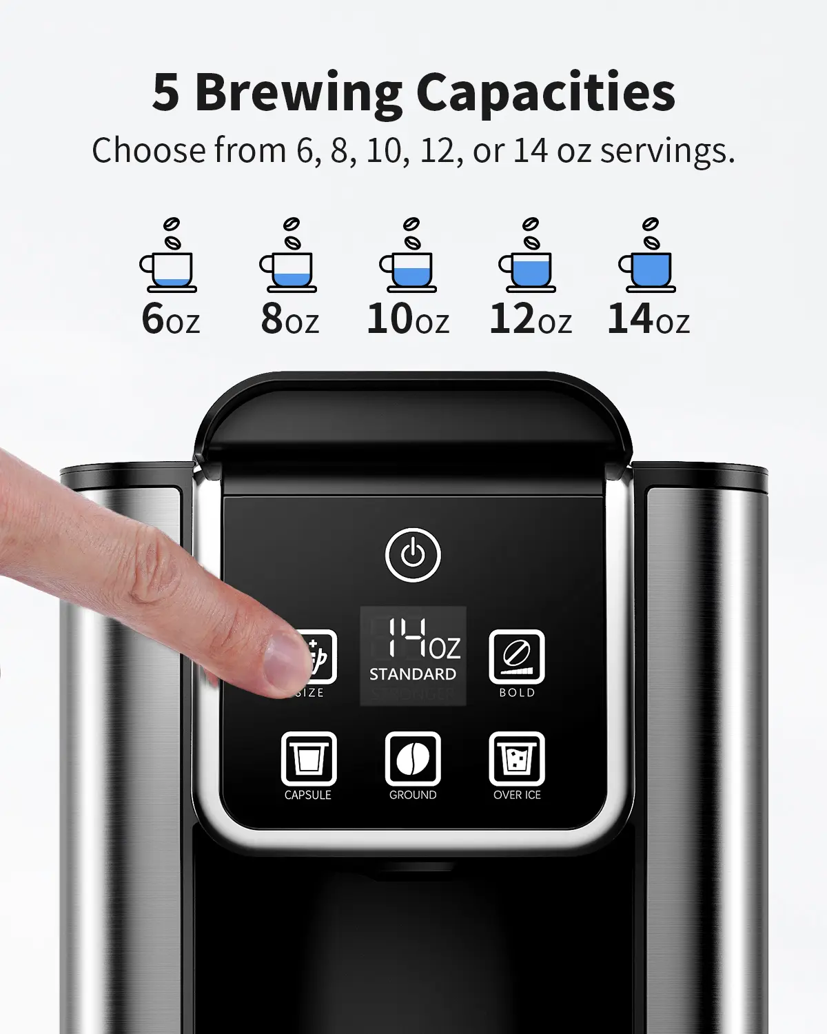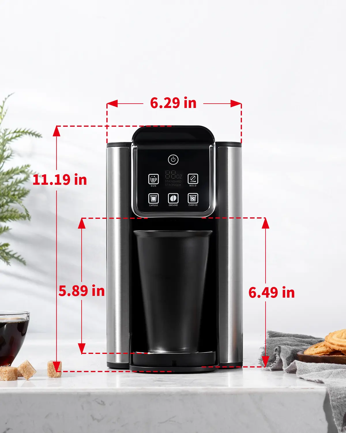 I love this coffeemaker! Makes iced coffee too! Doesn’t take up too much counter space and love that it’s digital! Also Comes with reusable kcups