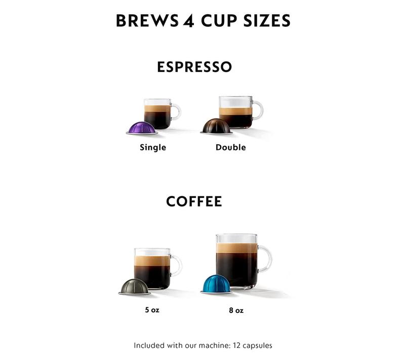 ·Includes VertuoPlus Deluxe coffee/espresso machine with 12 capsules; milk frother with frothing attachment, lid, and power base