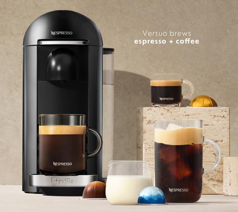 Brew your favorite cup of coffee or espresso effortlessly with the Nespresso VertuoPlus Deluxe Coffee Maker by Breville. With its versatile brewing options and included Aeroccino 3 milk frother, you can craft delicious cappuccinos and lattes in the comfort of your home. Elevate your coffee experience anytime, with convenience and style. From Breville.