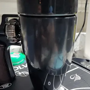 No It’s really sturdy and solid. And I love the revolver on it but I don’t know why I thought the cover was one you could drink from like most I didn’t care for that part but the rest is great