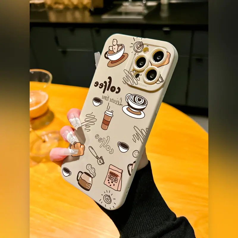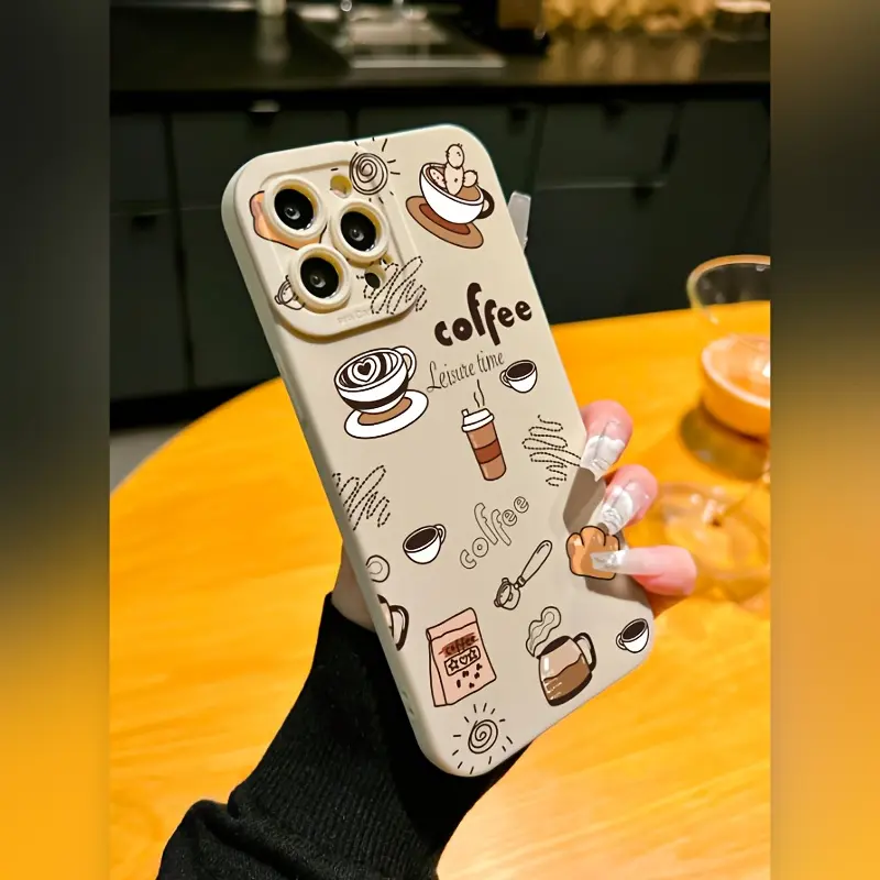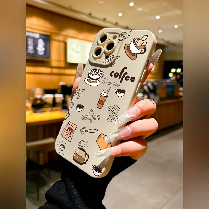 Coffee Pattern Solid Color Matte Lens Protection Anti-Drop TPU Case for iPhone 17 Pro Max 16 16e 15 14 Plus 13 12 Mini 11 Air X XS XR Straight Edge Drop-Resistant Rugged Durable Cover Shell Gift 2D printing
