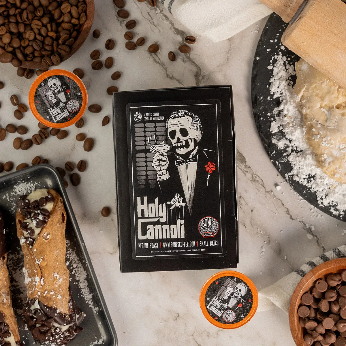 We're gonna make you a coffee you can't refuse. We've combined sweet, creamy cannoli flavor with our 100% Brazilian Arabica beans to create a truly delicious taste of the old country. Get some, or sleep with the fishes.