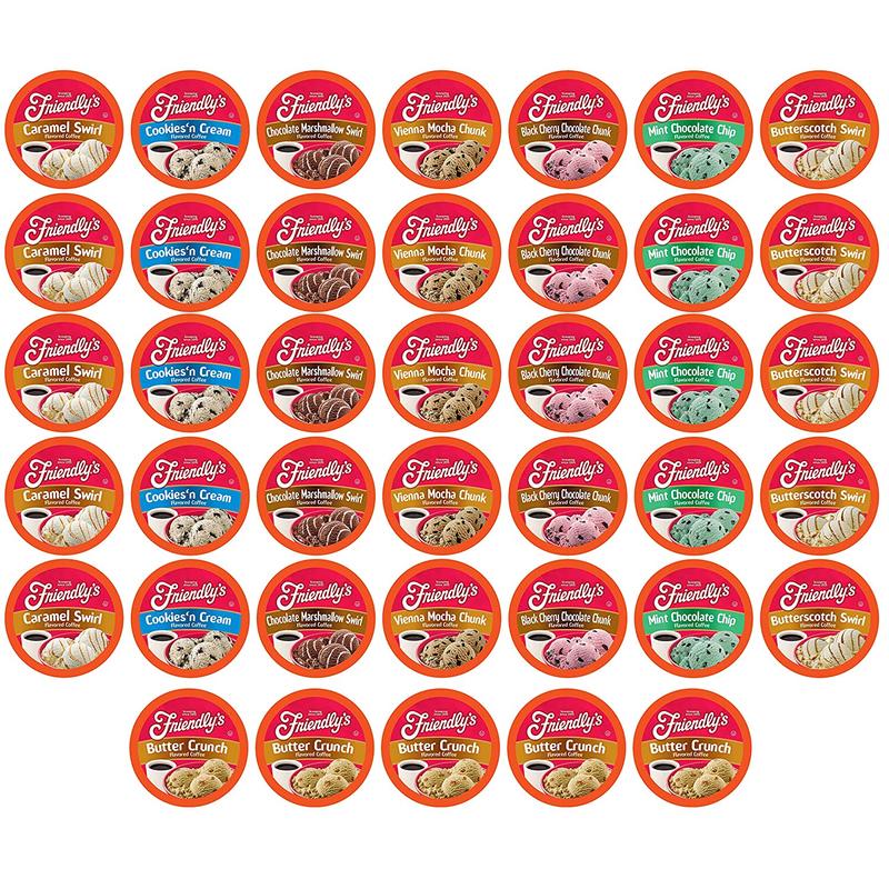 If you enjoy Flavored Coffee, you’ll love this Friendly's Variety Pack. Extra fresh and filter brewed, using only the highest quality 100 percent premium Arabica coffee beans. Sample the butterscotch swirl, chocolate marshmallow, mint chocolate chip, and Vienna mocha chunk flavored coffees.