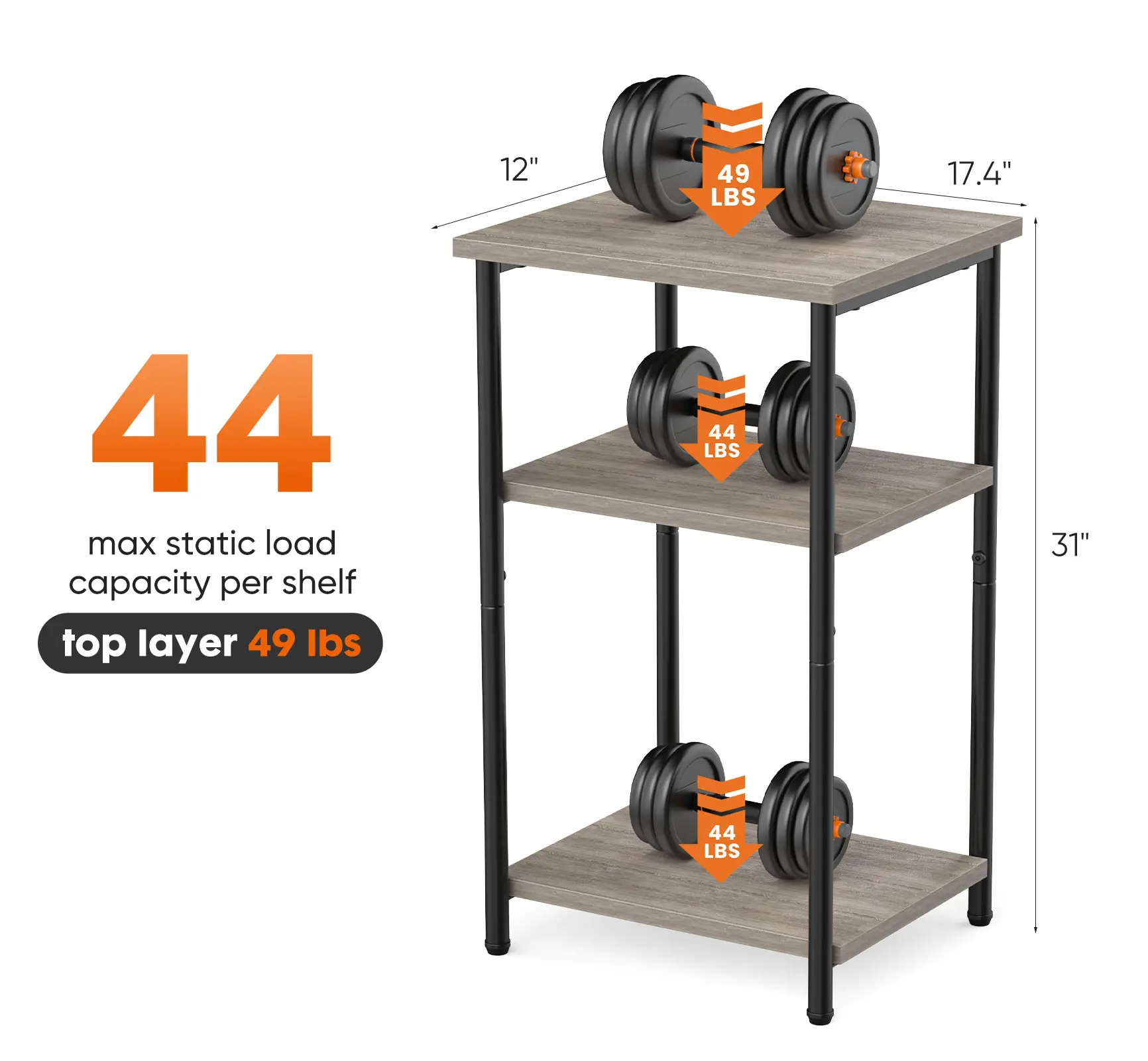 ·【Sturdy and Durable】 The top layer of the table supports up to 22KG(49 pounds), while the lower two layers can each handle up to 20KG(44 pounds). This ensures that the table is both strong and reliable for all your storage and display needs.