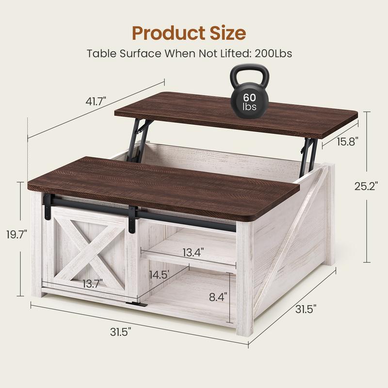 【Practical Lift Top Design】The coffee table experiences smooth and safe lifting with a high-quality lifting mechanism featuring gas struts. Raise the top of this coffee table from 19.7 inches to 25.4 inches and make it easy to work from home, enjoy a meal, do crafts, or play games while sitting comfortably on your couch