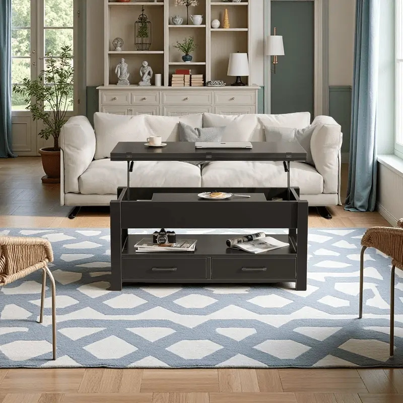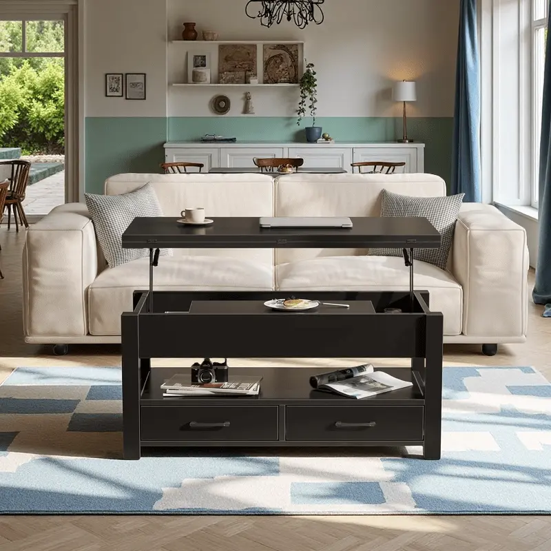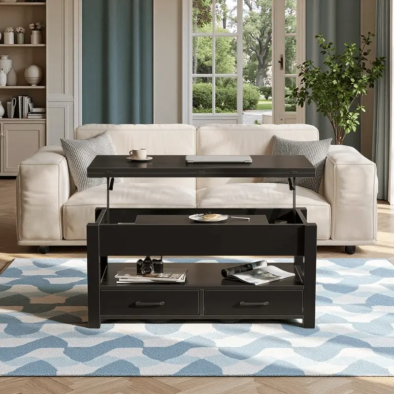Coffee Table Lift Top, Multi-Function Convertible Coffee Table with Drawers and Hidden Compartment, Coffee Table Converts to Dining Table for Living Room, Home Office, Patio Furniture, outdoor furniture