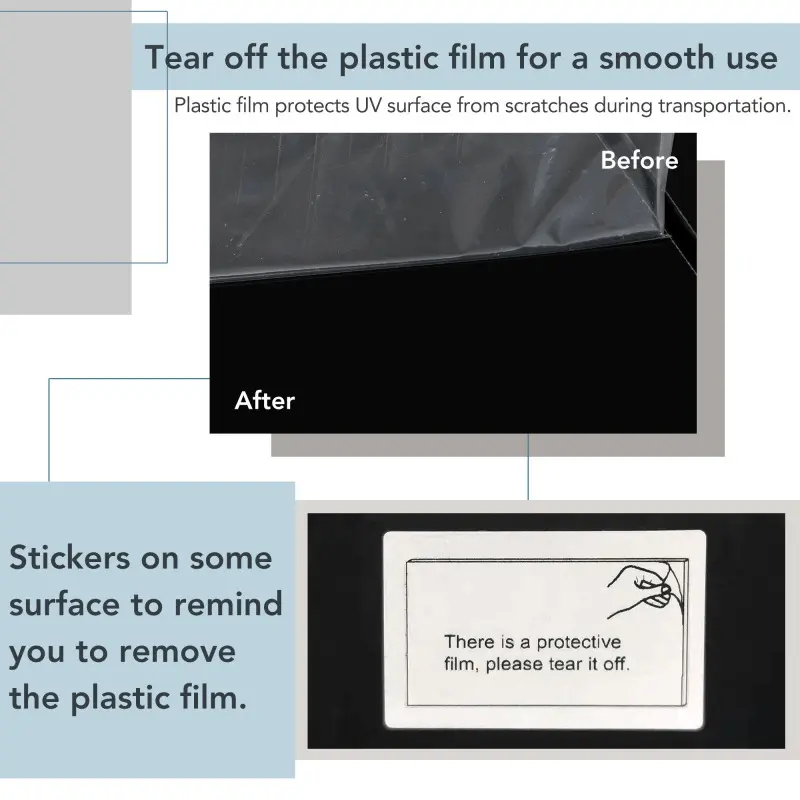 Notice - The plastic film for protecting UV from scratches should be teared off before put into use.If there is light dust on the edge, it can be wiped with a wet rag.Level of Assembly - Full Assembly NeededSuggested Number of People for Assembly/Install - 2Estimated Time to Set Up - 0.5 hAdult Assembly Required - YesAdditional Tools Required (Not Included) - Power Drill Recommended