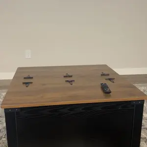 ·The hinged lift top provides ease in accessing hidden storage while also serving as an additional surface for food or drinks during gatherings or movie nights at home. It's perfect for keeping snacks nearby without taking up valuable surface space on the tabletop!