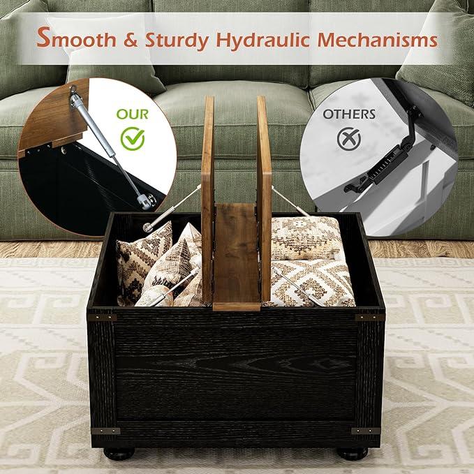 ·Functional Design: This square coffee table is designed to keep your living room tidy and spacious. The lift-up tabletop reveals a hidden compartment for blankets, pillows, toys, and more.
