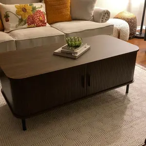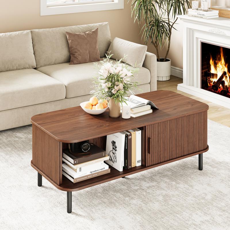 ·Semi-open Roller Shutter Sliding Door Design: The mid-century modern coffee table adopts a semi-open roller shutter sliding door design, which increases practicality while also enhancing the beauty of the living room.