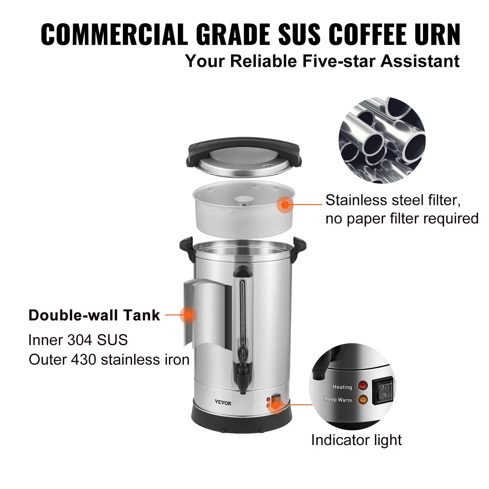 • Fast Brew 65 Cups for You: If you regularly make coffee for large groups of people, then it's time to consider investing in a fully functional coffee maker! Our commercial coffee urn can only takes 1 minute to brew one fresh cup of delicious hot coffee. Get ready to brew 65 cups of 150ml coffee without losing rich flavor.
