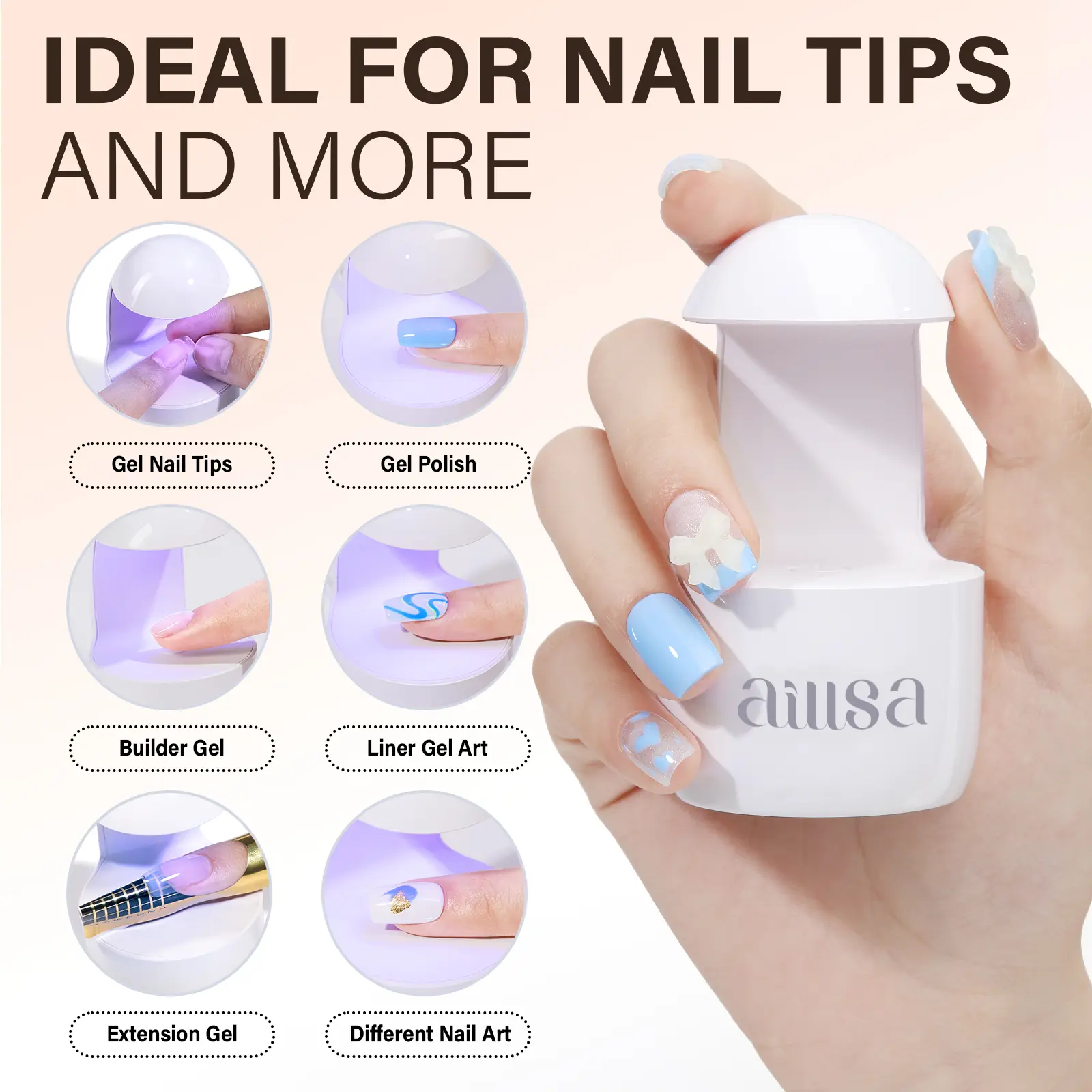 Mini UV Light: This uv nail light apply to most UV/LED gel, Top coat, base gel, colour gel, builder gel, nail sculpture gel, acrylic gel etc. Turns off automatically after 60s of touching the light on. Touch again will turn off