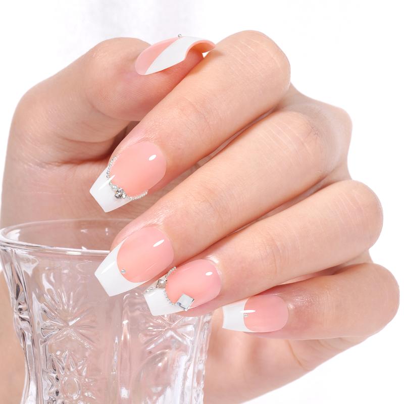 I love the style and shape of these nails. almost perfect. However, the white tip fades after 24 hours of washing your hands. I also love the quantity that I received. I wish there was a way you could figure out how to keep the white tips from fading so quickly. I will put a layer of clear polish on top and see if that will work.