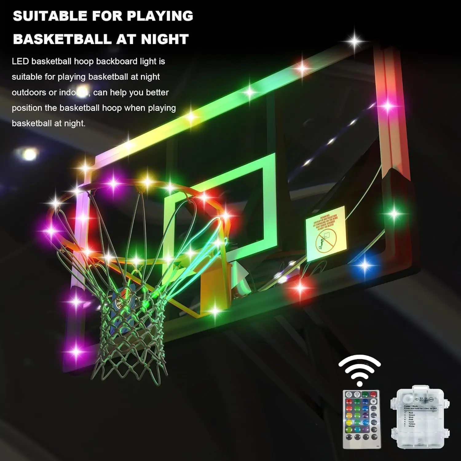 ·4 lighting modes + equipped with a remote control, allowing for selection of 12 colors and 4 flashing modes