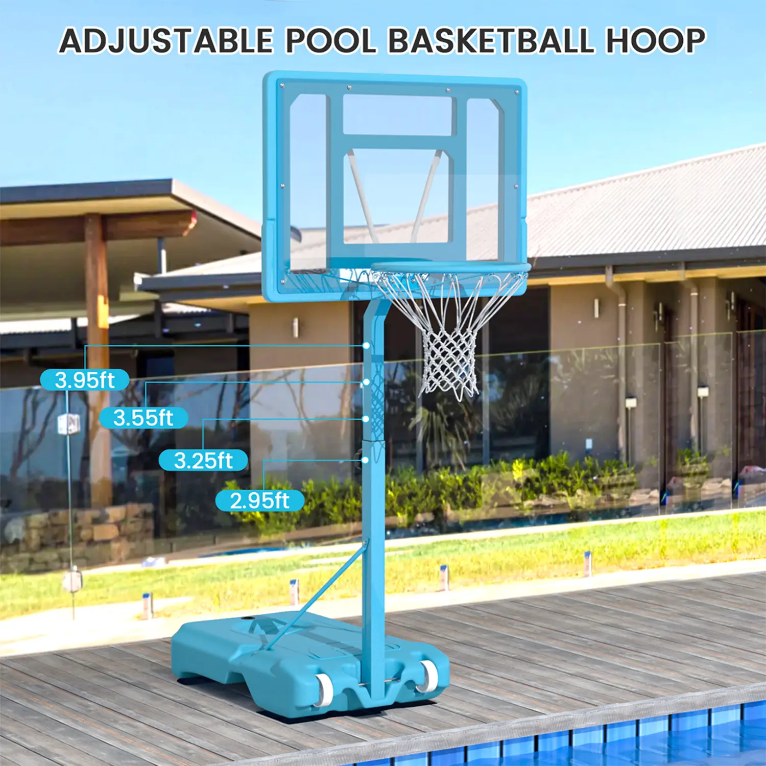 ·· Adjustable height: The height of the backboard and the hoop can be adjusted between 2.95 and 3.95 FEET above the water surface (the specific height may vary depending on the water level); it is highly suitable for adult swimming pool basketball games and family entertainment activities.