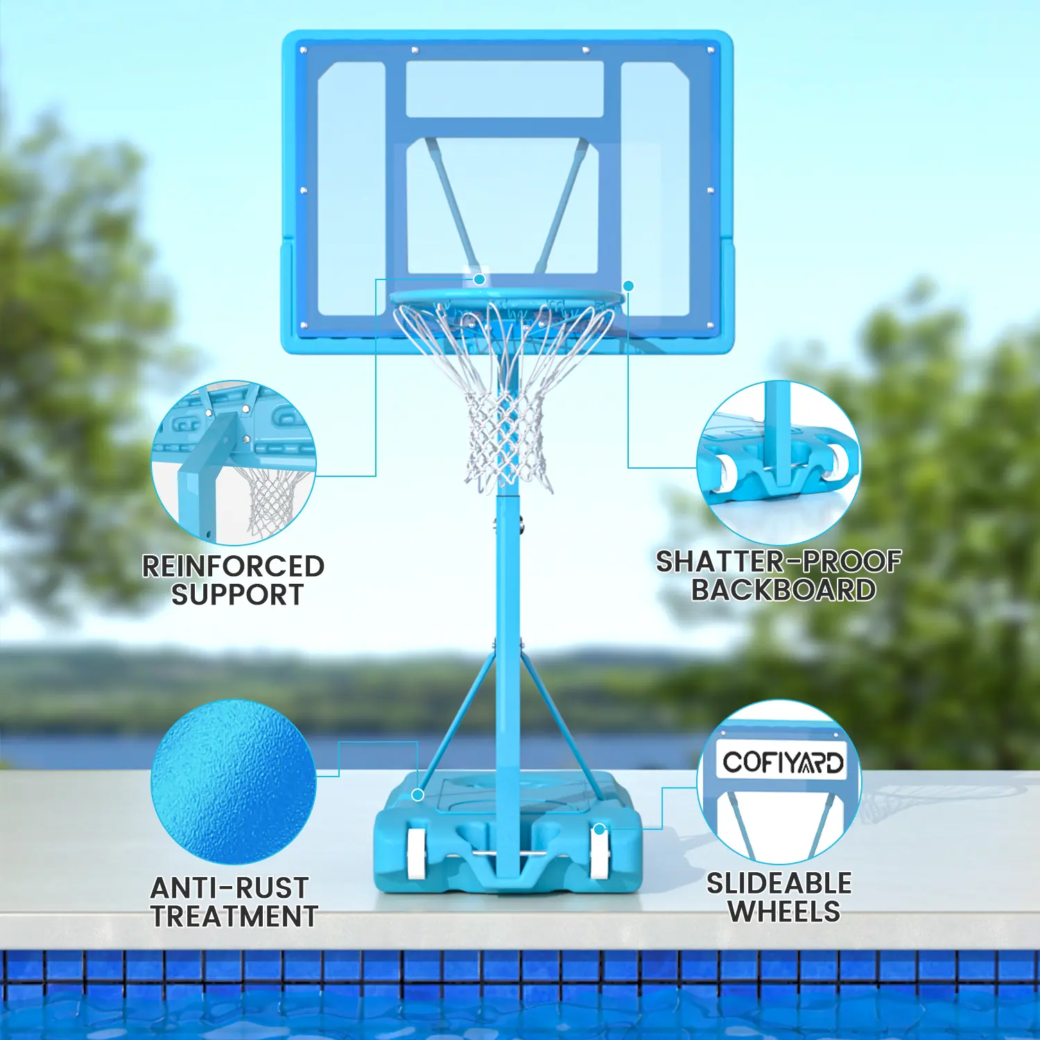 ·The high-quality UV treatment material can also prevent fading. The COFIYARD basketball stand Legend Edition can be set up in just a few minutes, with the base reinforced for stability (filled with water for use), placed at the edge of the swimming pool, making the COFIYARD basketball stand Legend Edition an interesting and convenient upgrade option for any indoor swimming pool! Additionally, all players can join in this fun through the adjustable height backboard and hoop. Now, with the COFIYARD swimming pool basketball stand Legend Edition, you can enjoy the maximum fun and high-quality experience!