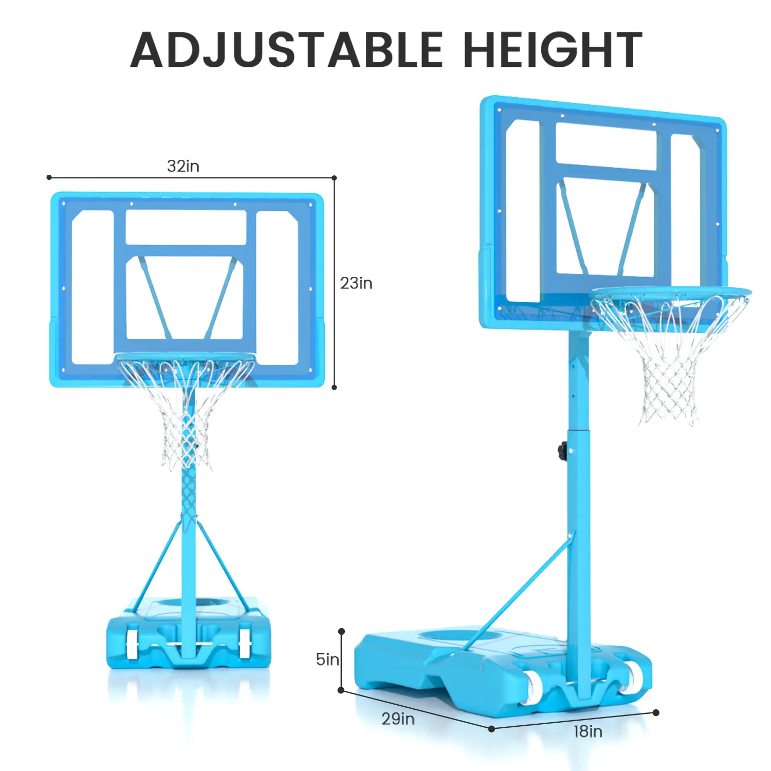 ·Top-tier swimming pool basketball stand: For those who desire an ultimate basketball experience in the swimming pool, this product will be an excellent choice. It features a super sturdy structural design, equipped with a huge, professional-style 32-inch x 23-inch shatterproof backboard and a standard-sized 18-inch metal hoop.