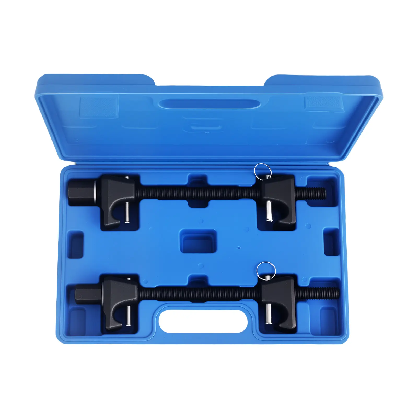 2) The heavy-duty pillar spring compressor is made of sturdy carbon steel, with a black anodized coating to prevent rust and corrosion. It has high durability and corrosion resistance even under harsh usage conditions. It uses forged hooks and center screws, which have been hardened to achieve maximum strength and lifespan. It is designed to withstand extreme pressure in any environment