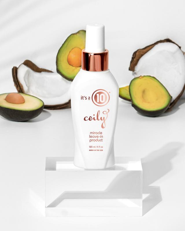 Nothing is as alluring as shiny, smooth, frizz -free hair regardless of how itâs styled. Itâs a 10 Miracle Coily Leave -In gives you the freedom to explore dozens of different looks all with the same flawless finish youâve come to expect from Itâs a 10. Stunning braids without flyaways, beachy waves that look soft and conditioned, defined springy curls, sleek straightened tresses â itâs all possible with just one product. It works by penetrating hair with deep moisturizers to soften and seal strands, while also imparting a bit of weightless styling control that takes the place of gels or hairsprays. Welcome to go - everywhere, do anything hair that gets more luscious with every use.