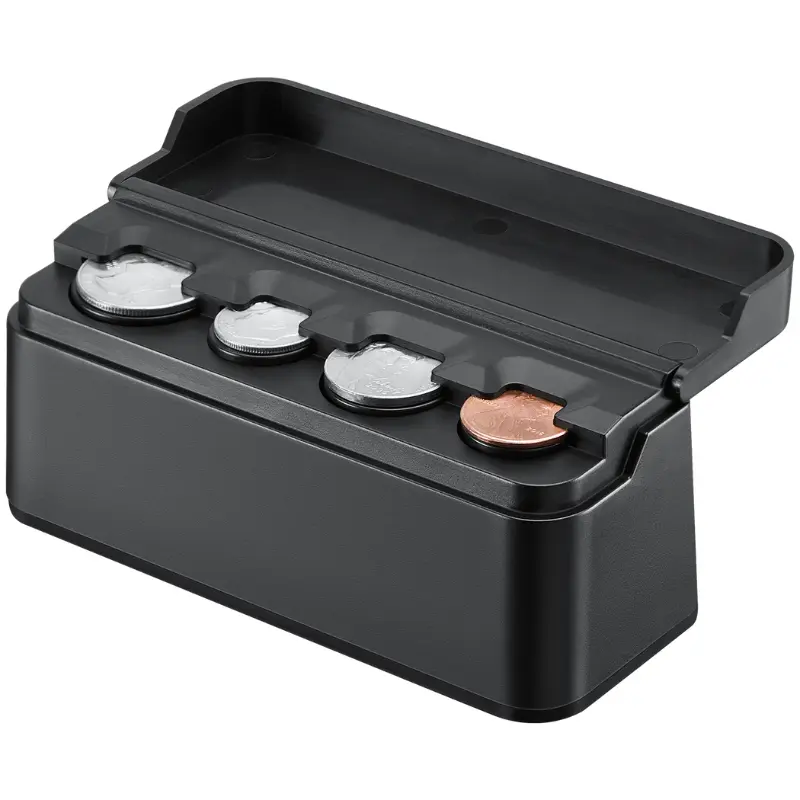 Perfect fit for all the loose change in the car. Disappointed there isn’t a magnetic lid but no big deal. I was also very disappointed the box with very dirt out of the package and is a little damaged. Will still be using it