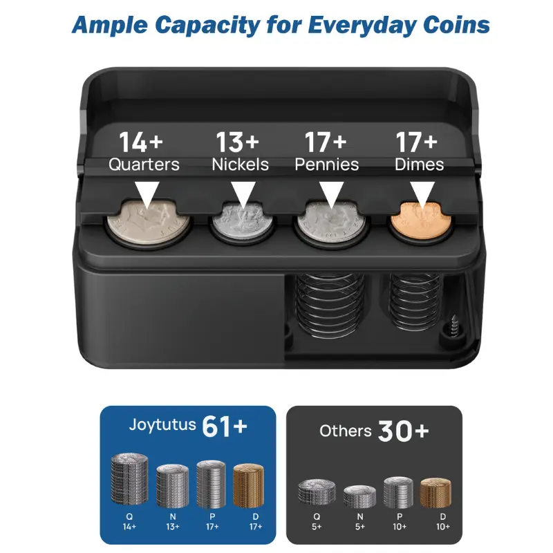 Love the size and the color. It’s sturdy and so easy to use. Love the labels on the coin slots. Super easy to use and compact enough to fit in your purse or bag.