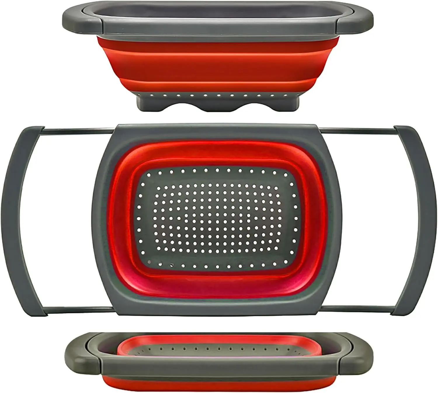 This colander is a 6-quart strainer and colander with extendable handles. It's a folding strainer for kitchen use. Perfect for draining veggies and fruit over the sink. The extendable handles make it easy to use. It's a versatile kitchen tool for your daily needs.