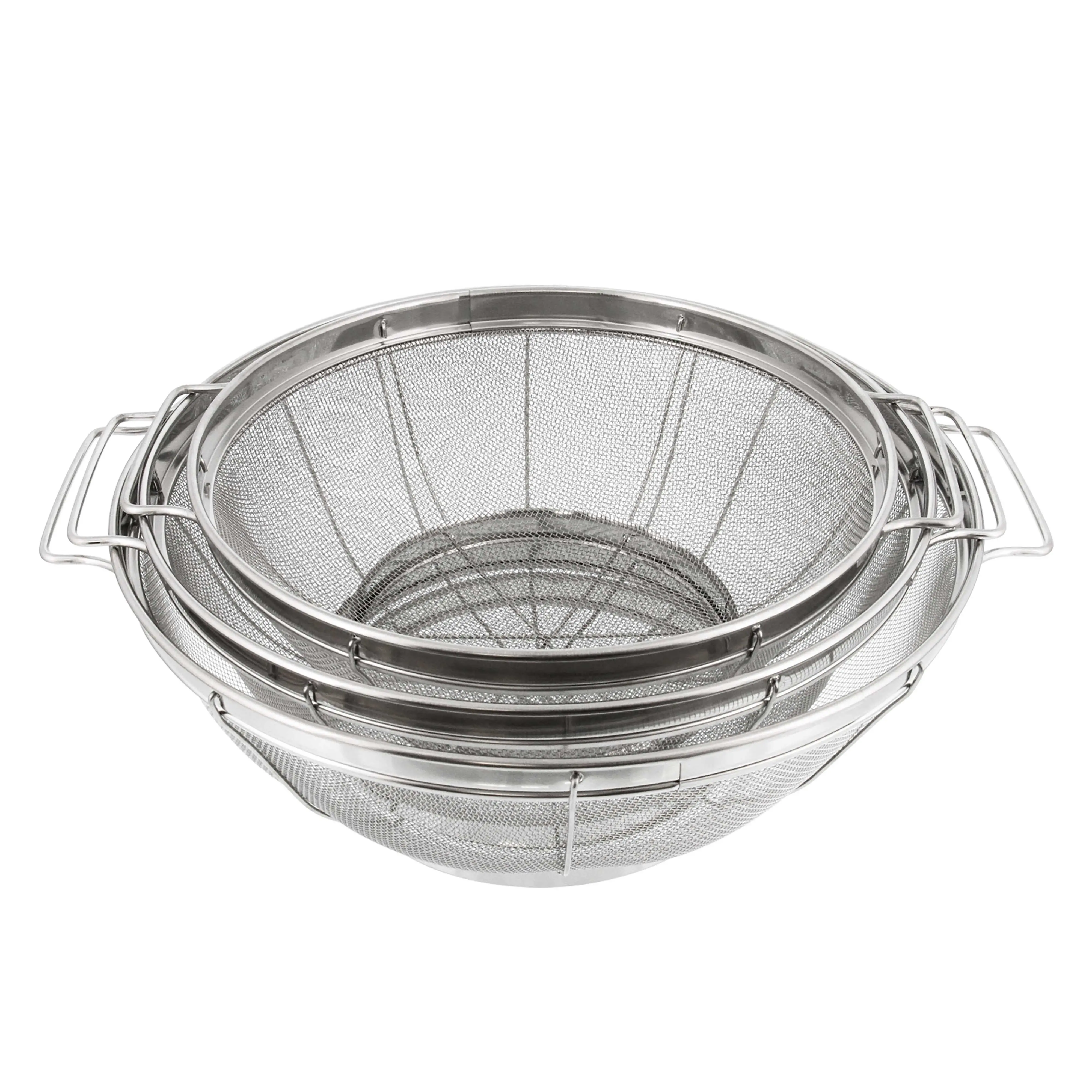 Set of 3 Colanders - 3 sizes of premium high performance round stainless steel mesh colander net strainers with handles