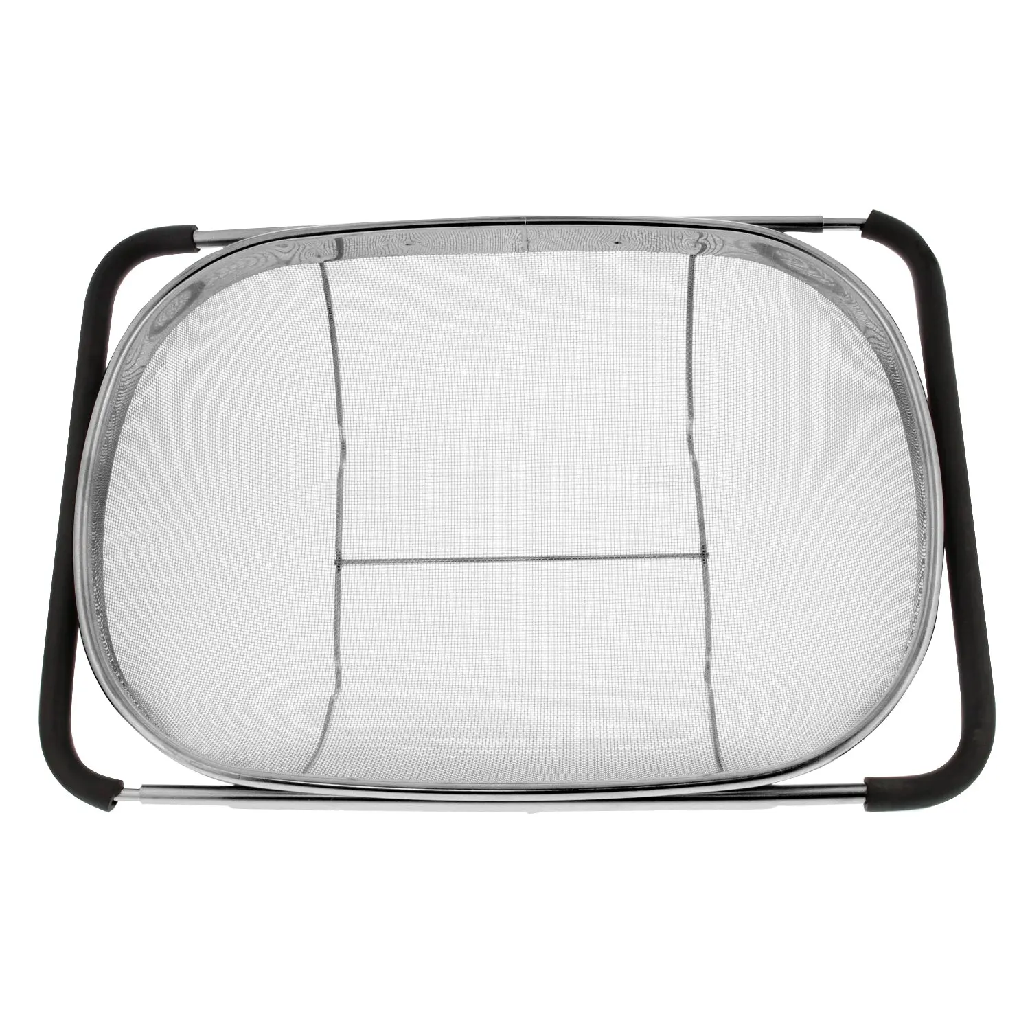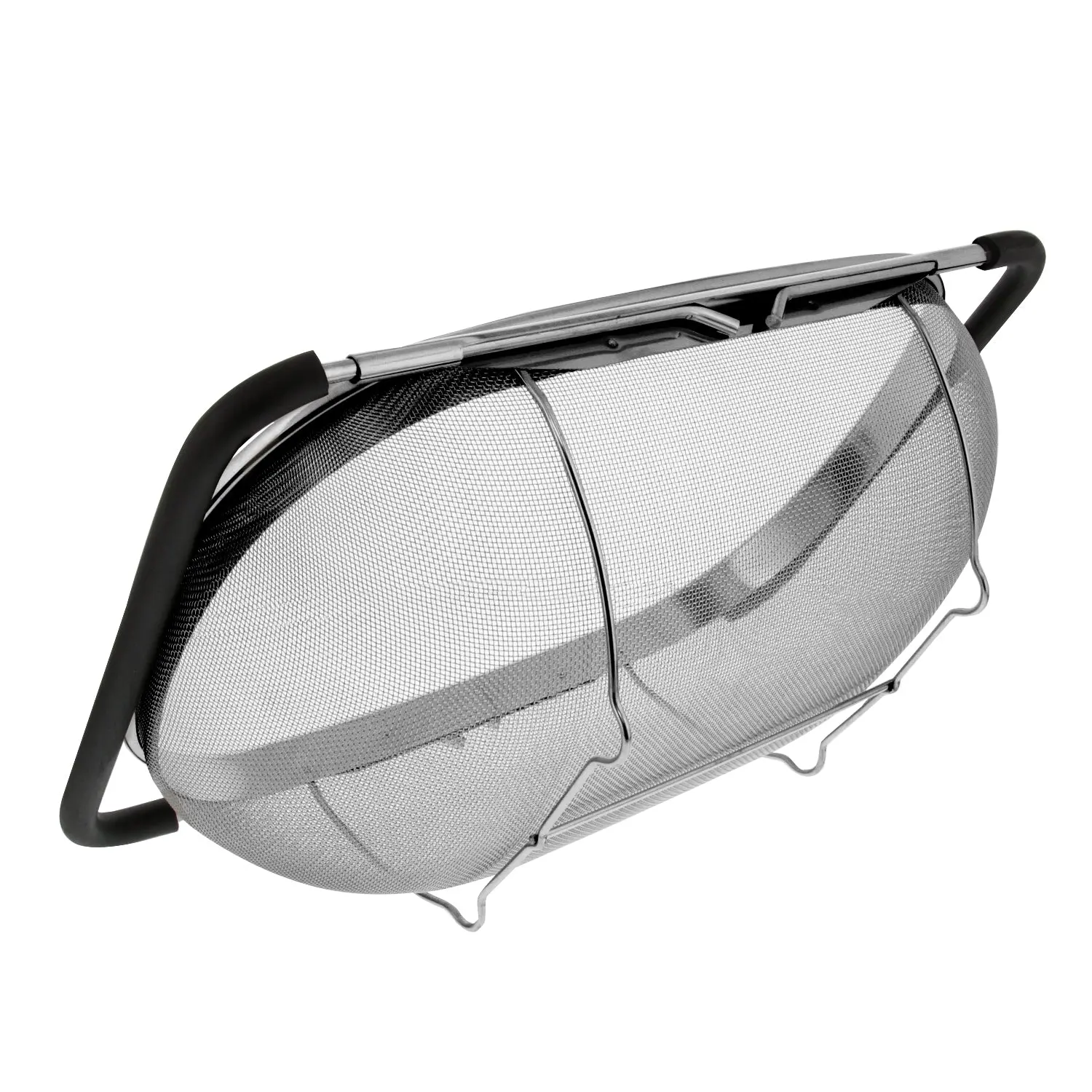High performance over the sink oval stainless steel colander with a fine mesh net strainer basket and expandable rubber grip handles